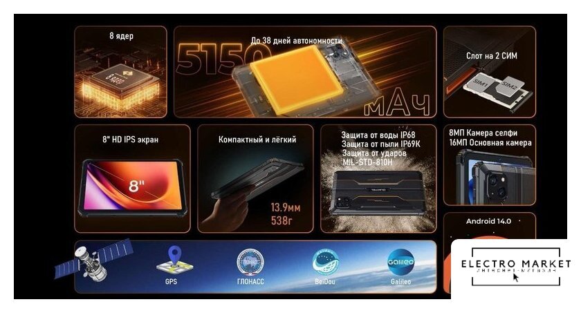 10.4" IPS, 60 Гц (2000x1200), Android, UniSoC Tiger T616, 8 ГБ / 256 ГБ, Wi-Fi + сотовая связь, аккумулятор 7000 мАч