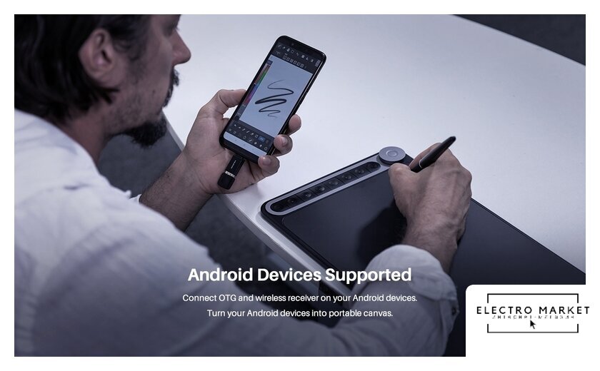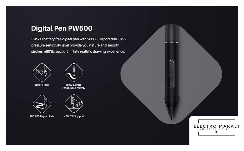 Комплект поставки | - графический планшет;- пассивное перо со сменными наконечниками;- держатель для пера;- USB адаптеры;- беспроводной ресивер;- USB-C кабель;- документация; |