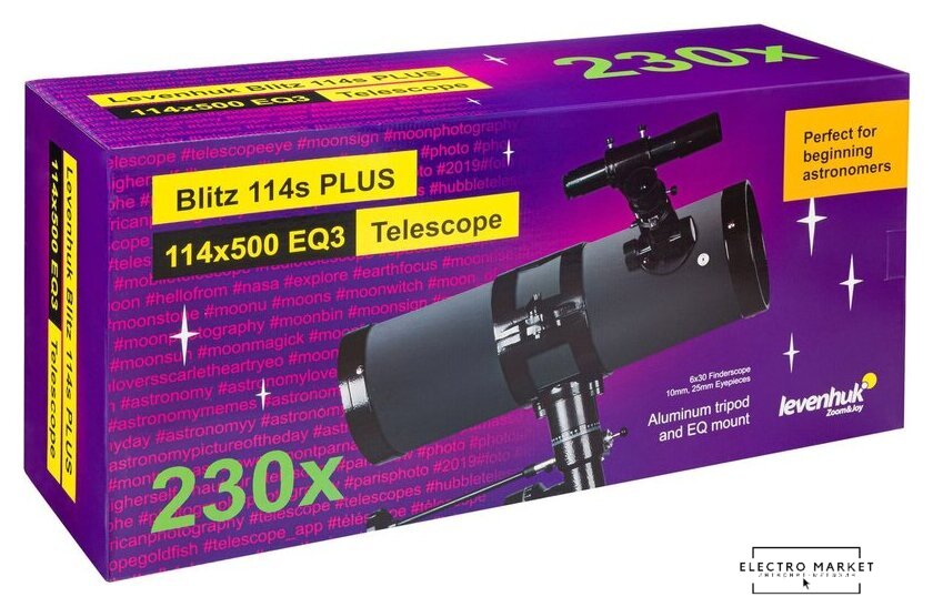 рефлектор Ньютона, диаметр: 114 мм, фокусное расстояние: 900 мм, относительное отверстие: 1/8, азимутальная (AZ) монтировка, окуляры 10 мм/25 мм