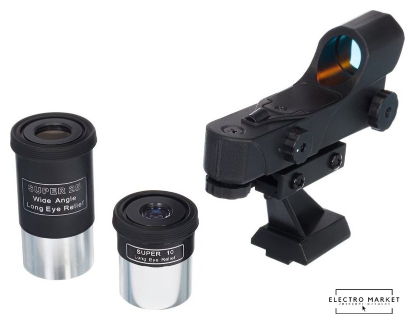 рефлектор Ньютона, диаметр: 114 мм, фокусное расстояние: 450 мм, относительное отверстие: 1/4, экваториальная (EQ) монтировка, окуляры 10 мм/25 мм