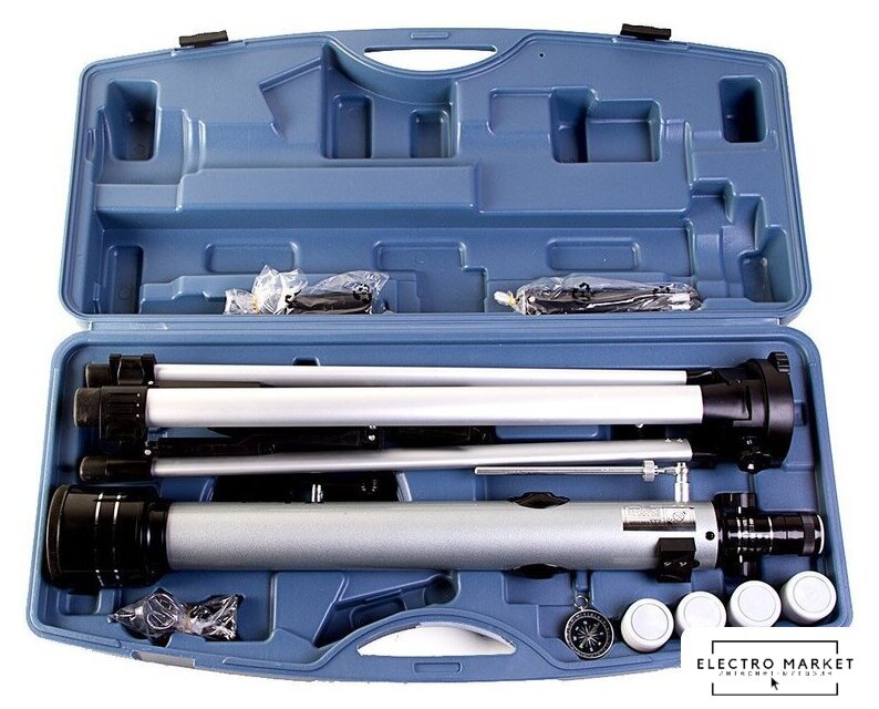 ахроматический рефрактор, диаметр: 50 мм, фокусное расстояние: 600 мм, относительное отверстие: 1/12, азимутальная (AZ) монтировка, окуляры 4 мм/12.5 мм/20 мм