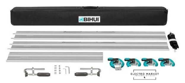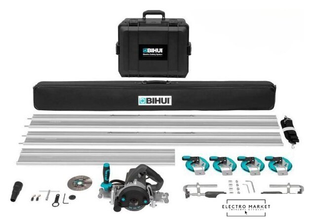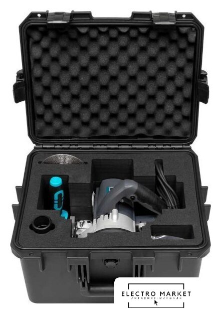 | Комплектация | циркулярный электроплиткорез, 3 направляющие, 2 алмазных диска, 4 присоски, 2 струбцины, набор вспомогательных аксессуаров, сумка, кейс |