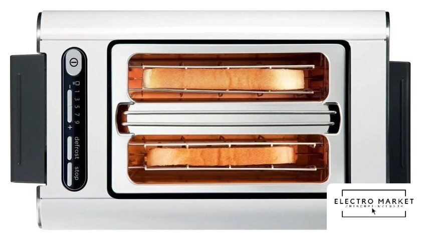 1000 Вт, количество тостов: 2, корпус: металл, решетка для подогрева булочек, 9 степеней обжаривания, цвет нержавеющая сталь