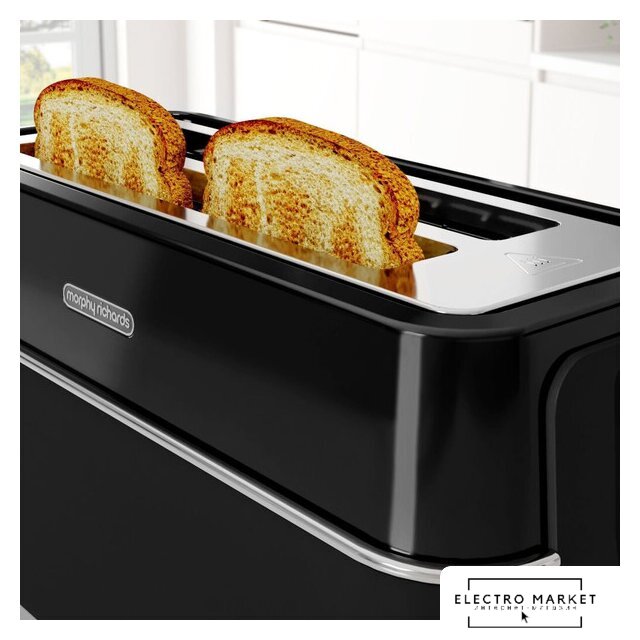 980 Вт, количество тостов: 2, корпус: металл, решетка для подогрева булочек, 7 степеней обжаривания, цвет черный