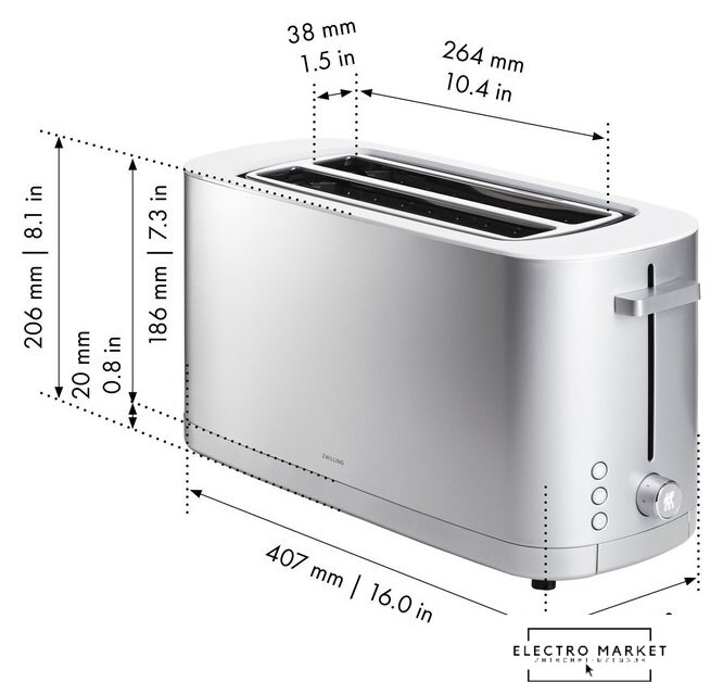 1100 Вт, количество тостов: 2, корпус: металл, цвет нержавеющая сталь