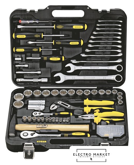 Комплектация | - 12 шт.: 1/4" Головки торцевые 6-гранные Super Lock: 4, 4.5, 5, 5.5, 6, 7, 8, 9, 10, 11, 12, 13 мм- 1 шт.: 1/4" Трещотка (ключ трещоточный с быстрым сбросом): 45 зубов- 2 шт.: 1/4" Удлинитель: 50, 100 мм- 1 шт.: 1/4" Отвертка с присоединительным квадратом- 30 шт.: 1/4" Набор бит:Hex (шестигранник): 1.5, 2, 2.5, 3, 4, 5, 6Ph (крест): 0, 1, 2, 3, 4Pz (позидрайв): 0, 1, 2, 3, 4Torx (звёздочка): T10, T15, T20, T25, T27, T30Slot (шлиц): 3, 4, 4.5, 5, 5.5, 6, 7- 1 шт.: 1/4" Держатель для бит магнитный- 1 шт.: 1/4" Адаптер для бит- 17 шт.: 1/2" Головки торцевые 6-гранные Super Lock: 13, 14, 15, 16, 17, 18, 19, 20, 21, 22, 23, 24, 25, 26, 27, 30, 32 мм- 2 шт.: 1/2" Головки свечные магнитные: 16, 21 мм- 1 шт.: 1/2" Трещотка (ключ трещоточный с быстрым сбросом): 45 зубов- 1 шт.: 1/2" Удлинитель: 125 мм- 12 шт.: Ключи комбинированные: 6, 7, 8, 9, 10, 11, 12, 13, 14, 17, 19, 22 мм- 1 шт.: Молоток (деревянная ручка): 300 грамм- 4 шт.: Отвертки:Slot (шлиц): 6.5x100, 8x150 ммPh (крест): 1x75, 2x100 мм- 1 шт.: Клещи переставные: 250 мм- 1 шт.: Пассатижи: 180 мм- 1 шт.: Автотестер 6-12-24 V |