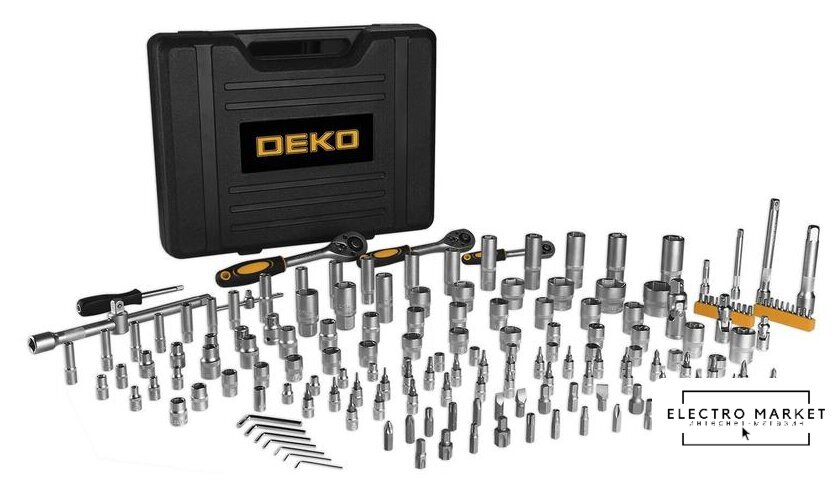 | Комплектация | - Головки 1/4": 4, 4.5, 5, 5.5, 6, 7, 8, 9, 10, 11, 12, 13, 14 мм.- Головки Торкс 1/4": Е4, 5, 6, 7, 8.- Головки удлиненные 1/4": 4, 5, 6, 7, 8, 9, 10 мм.- Удлинитель торцевых головок 1/4": 2", 4".- Выдвижной Т-образный стержень 1/4".- Держатель для бит 1/4".- Биты: Н2, 3, 4, 5, 6; FD4, 5.5, 7; РН1, 2, 3; PZ1, 2, 3; T8, 9, 10, 15, 20, 25, 27, 30; TT8, 9, 10, 15, 20, 25, 27, 30.- Головки 3/8": 10, 11, 12, 13, 14, 15, 16, 17, 18, 19 мм.- Головки Торкс 3/8": Е10, 11, 12, 14, 16, 18.- Головки удлиненные 3/8": 10, 11, 12, 13, 14, 15 мм.- Головка свечная 3/8": 21 мм.- Удлинитель торцевых головок 3/8" х 6"- Головки 1/2": 10, 11, 12, 13, 14, 15, 16, 17, 18, 19, 20, 21, 22, 24, 27, 30, 32 мм.- Головки Торкс 1/2": Е20, 24.- Головки удлиненные 1/2": 16, 17, 18, 19, 22 мм.- Головка свечная 1/2": 16, 21 мм.- Удлинитель торцевых головок 1/2": 5", 10"- Переходник для головок торцевых 1/2"- Трещотка 1/2", 1/4", 3/8".- Шарнир карданный 1/2", 1/4", 3/8".- Ключ шестигранный 1.0, 1.5, 2, 2.5, 3, 4, 5 мм.- Биты 8 мм: H7, 8, 10, 12, 14; FD8, 10, 12; PH3, 4; PZ3, 4; T40, 45, 50, 55, 60, 70; TT40, 45, 50, 55, 60, 70.- Биты с держателем 6.35 мм: Т8, 9, 10, 15, 20, 25, 30; Н3, 4, 5; ТТ8, 9, 10, 15, 20, 25, 30; SL4, 5.5, 7.- Переходник для бит 1/2", 3/8". |