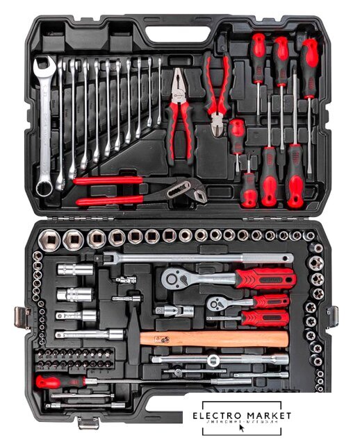 | Комплектация | Инструменты в наборетрещотка (2 шт.), отвертка (7 шт.), кусачки (1 шт.), пассатижи (1 шт.), плоскогубцы (1 шт.), молоток (1 шт.), ключ гаечный (12 шт.)Трещотка1/2″ (72 зубца), 1/4″ (72 зубца)Отверткишлицевая (SL) (3 шт.), крестовая (PH) (3 шт.), шестигранная (Hex) (1 шт.)Доп. комплектациярукоятка (1 шт.), кейс (пластиковый), захват (1 шт.), магнит телескопический (1 шт.)Оснасткаголовки (44 шт.), насадки-биты (40 шт.), удлинители (7 шт.), кардан (2 шт.), адаптер для бит (1 шт.), адаптер (1 шт.)Головкиторцевые шестигранные (29 шт.), торцевые Е-тип (13 шт.), свечные (2 шт.)Торцевые шестигранные головки1/2″ (8, 10, 11, 12, 13, 14, 15, 16, 17, 18, 19, 20, 21, 24, 27, 30, 3), 1/4″ (4, 4.5, 5, 5.5, 6, 7, 8, 9, 10, 11, 12, 13 мм)Торцевые головки E-тип1/2″ (Е10, Е11, Е12, Е14, Е16, Е18, Е20, Е24), 1/4″ (Е4, Е5, Е6, Е7, Е8)Удлинители1/2″ (75, 125, 250 мм), 1/4″ (50, 100 мм), гибкий удлинитель (2 шт.)Кардан1/2″, 1/4″Ключивороток (1 шт.), комбинированный (11 шт.)Размер ключа8 мм, 10 мм, 12 мм, 13 мм, 14 мм, 15 мм, 17 мм, 16 мм, 19 мм, 22 мм, 21 мм |