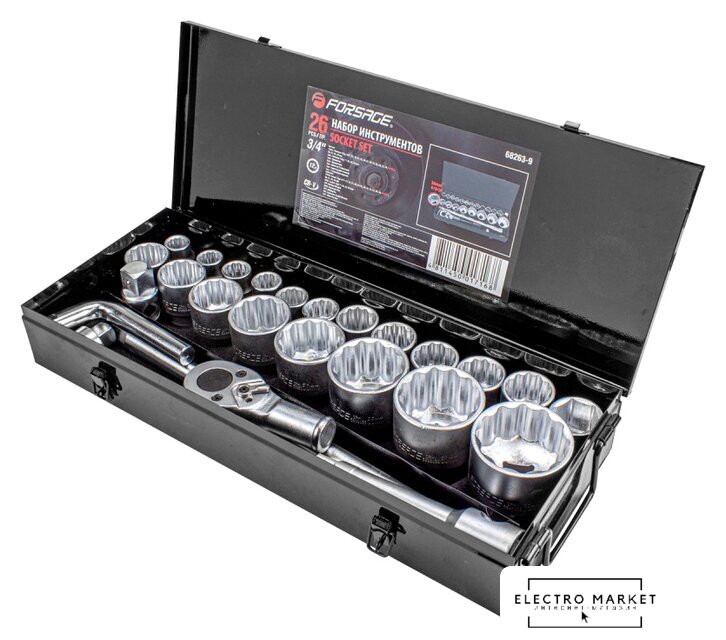 набор трещотка с головками, 3/4", 1", 26 предметов