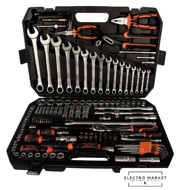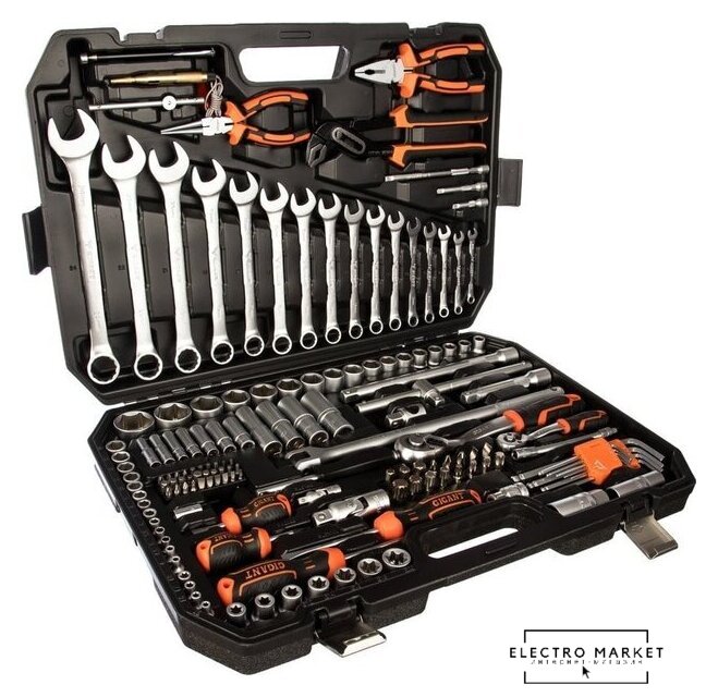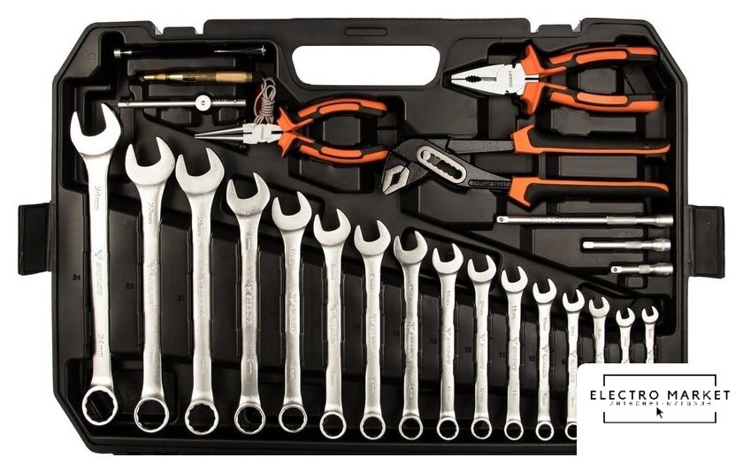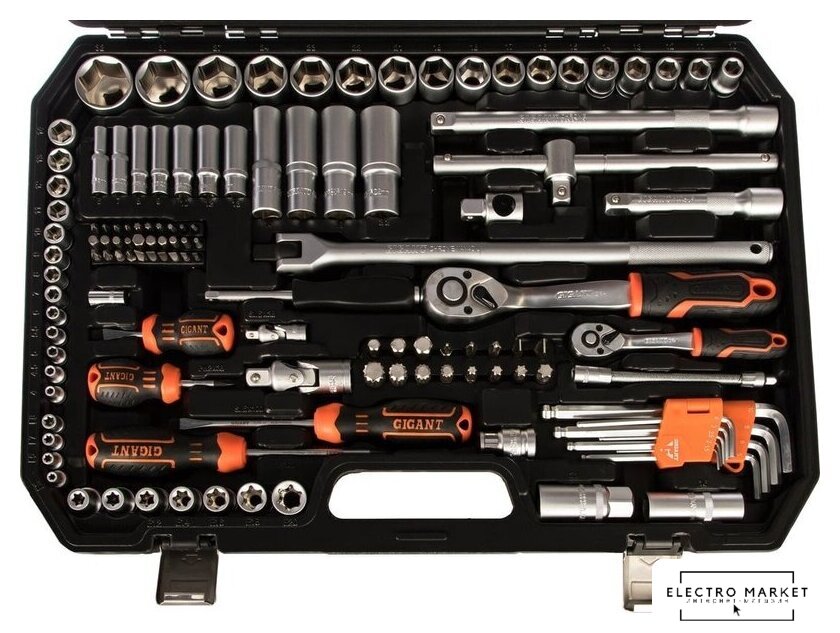 | Комплектация | - Кейс.- 1/2":Головки торцевые – 10; 11; 12; 13; 14; 15; 16; 17; 18; 19; 21; 22; 23; 24; 27; 30; 32 мм.Головки торцевые Е-профиль внешний Torx – Е-10; Е-11; Е-12; Е-14; Е-16; Е-18; Е-20.Головки свечные – 16; 21 мм.Удлинители – 125; 250 мм.Трещоточный ключ 72 зубца.Вороток Т-образный – 250 мм.Переходник 3/8"×1/2".Шарнир карданный.Переходник для вставок-бит 1/2"DR×5/16"HDR.Биты 5/16" шестигранные – H8; H10; H12.Биты 5/16" Torx с отверстием – T40; T45; T50; T55.Биты 5/16" шлицевые – SL8; SL10.Биты 5/16" крестовые Phillips – PH2; PH3; PH4.Биты 5/16" двенадцатигранные Spline – M10; M12; M14; M16.- 1/4":Головки торцевые – 4; 4,5; 5; 5,5; 6; 7; 8; 9; 10; 11; 12; 13; 14 мм.Головки торцевые удлиненные – 6; 7; 8; 9; 10; 11; 12; 13 мм.Головки торцевые Е-профиль внешний Torx – Е-5; Е-6; Е-7; Е-8.Трещоточный ключ 72 зубца.Вороток Т-образный – 115 мм.Отвертка-держатель.Вороток шарнирный.Удлинители – 50; 75; 150 мм.Удлинитель гибкий – 145 мм.Шарнир карданный.Биты Hex – H3; H4; H5; H6; H7; H8.Биты Torx – T10; T15; T20; T25; Т27; T30.Биты Slotted – SL3; SL4; SL5; SL5,5; SL6; SL7.Биты Phillips – PH0; PH1; PH2; PH3.Биты Spline – M5; M6; M8.Переходник для торцевых головок 1/4".- Ключи комбинированные – 6; 7; 8; 9; 10; 11; 12; 13; 14; 15; 16; 17; 19; 21; 22; 24 мм.- Ключи шестигранные – 1,5; 2; 2,5; 3; 4; 5; 6; 8; 10 мм.- Отвертки крестовые Phillips – РН 2×38 мм; РН 2×100 мм.- Отвертки шлицевые Slotted – SL 6×38 мм; SL 6×100 мм.- Круглогубцы – 160 мм.- Пассатижи – 180 мм.- Переставные клещи – 250 мм.- Телескопическая ручка с магнитом.- Тестер напряжения 12 В. |