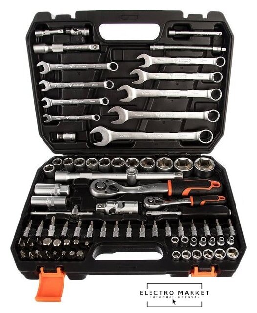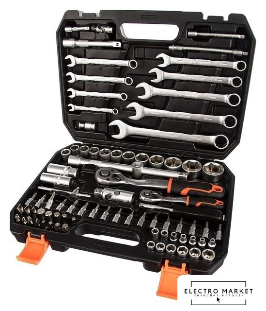 | Комплектация | - 1/2":, Головки торцевые: 14; 15; 16; 17; 18; 19; 21; 22; 24; 27; 30; 32 мм., Переходник для вставок-бит 1/2"DR×5/16"HDR., Биты 5/16" шестигранные, 30 мм: H8; H10; H12; H14., Биты 5/16" Torx с отверстием, 30 мм: T40TR; T45TR; T50TR; T55TR., Биты 5/16" шлицевые, 30 мм: SL8; SL10; SL12., Биты 5/16" крестовые Phillips, 30 мм: PH3; PH4., Биты 5/16" крестовые Pozidrive, 30 мм: PZ3; PZ4., Трещоточный ключ 72 зубца., Шарнир карданный., Удлинители: 125 и 250 мм., Головки свечные: 16 и 21 мм., Переходник трехсторонний 1/2"DR., - 1/4":, Головки торцевые: 4; 4,5; 5; 5,5; 6; 7; 8; 9; 10; 11; 12; 13; 14 мм., Насадки торцевые со вставками-битами шестигранными: H3; H4; H5; H6., Насадки торцевые со вставками-битами Torx: T8; T10; T15; T20; T25; T30., Насадки торцевые со вставками-битами шлицевыми: SL4; SL5,5; SL7., Насадки торцевые со вставками-битами Phillips: PH1; PH2., Насадки торцевые со вставками-битами Pozidrive: PZ1; PZ2., Трещоточный ключ 72 зубца., Вороток Т-образный 120 мм., Удлинители: 50 и 100 мм., Шарнир карданный., Удлинитель гибкий 150 мм., Отвертка-держатель., Переходник для вставок-бит 1/4"DR×1/4"HDR., - Ключи комбинированные: 8; 10; 11; 12; 13; 14; 17; 19; 22 мм., - Кейс. |