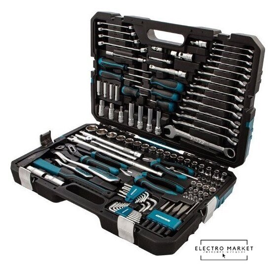 | Комплектация | Инструменты в наборе трещотка (2 шт.), отвертка (6 шт.), клещи (1 шт.), плоскогубцы (1 шт.), молоток (1 шт.), выколотка (1 шт.), зубило (1 шт.), бокорезы (1 шт.), ключ гаечный (38 шт.)Трещотка 1/2″, 1/4″Отвертки шлицевая (SL) (3 шт.), крестовая (PH) (3 шт.)Доп. комплектация кернер (1 шт.), кейс (пластиковый), бородок (1 шт.), крейцмейстер (1 шт.)ОснасткаОснастка головки, удлинители (5 шт.), кардан (2 шт.)Головки торцевые шестигранные (30 шт.), свечные (2 шт.), головки со вставкой (14 шт.), удлиненные шестигранные (8 шт.)Торцевые шестигранные головки 1/2″ (8, 9, 10, 11, 12, 13, 14, 15, 16, 17, 18-22, 24, 27, 30, 32 мм), 1/4″ (4, 4.5, 5, 5.5, 6, 7, 8, 9, 10, 11, 12, 13 мм)Головки со вставкой шестигранные (Hex) (Н4, Н5, Н6, Н7, Н8, Н10, Н12, Н14, Н17), звездочкой (Torx) (Т10, Т15, Т20, Т25, Т27)Удлинители 1/2″ (125, 250 мм), 1/4″ (75 мм), гибкий удлинитель (1/4")Кардан 1/2″ (12.7 мм), 1/4″ (6.35 мм)КлючиКлючи вороток (4 шт.), комбинированный (14 шт.), разрезной (4 шт.), имбусовый (16 шт.)Воротки T-образныйРазмер ключа 8 мм, 10 мм, 11 мм, 12 мм, 13 мм, 14 мм, 15 мм, 17 мм, 16 мм, 19 мм, 1.5 мм, 2 мм, 2.5 мм, 3 мм, 4 мм, 5 мм, 6 мм, 21 мм |