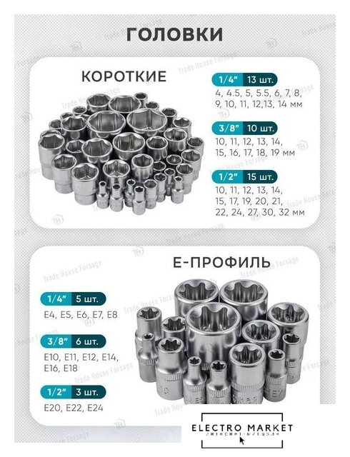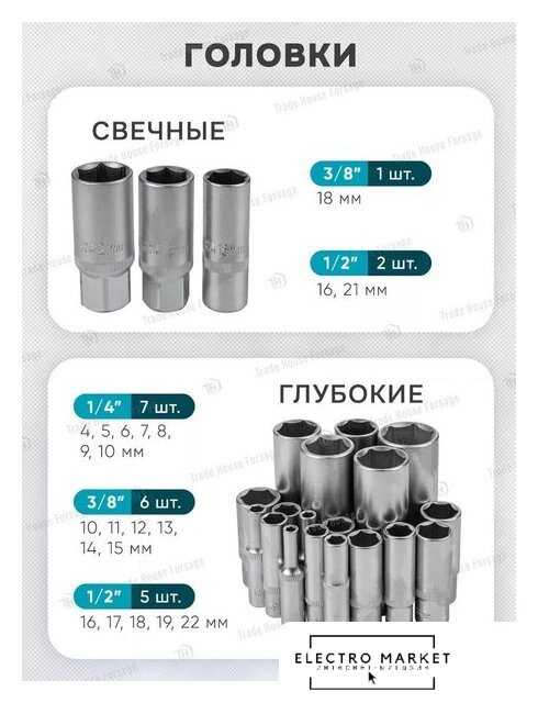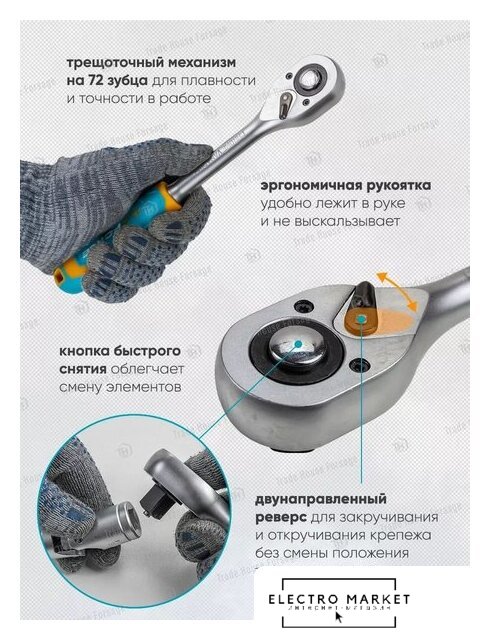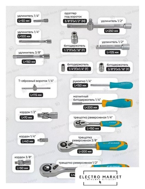 | Трещотка | 3 (1/2", 3/8", 1/4") |