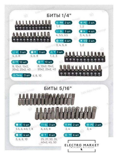 | Шестигранные отверточные биты 1/4" | 6 предмет(ов) |