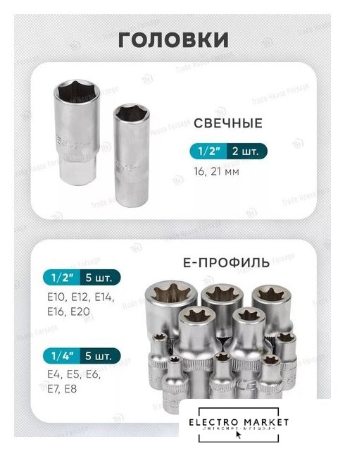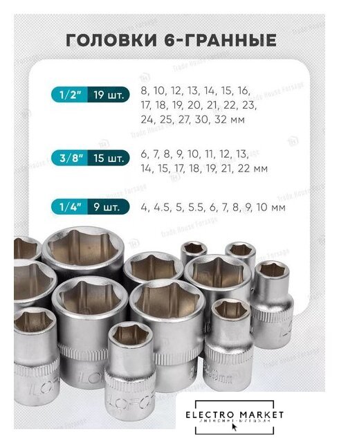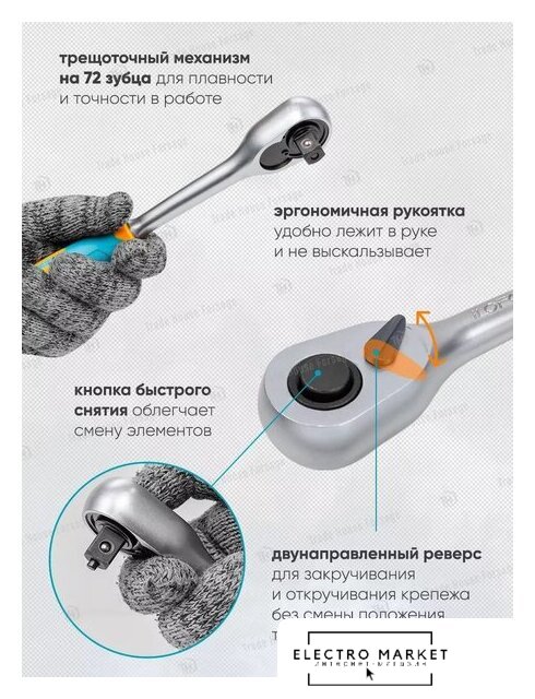 | Трещотка | 3 (1/2", 3/8", 1/4") |
