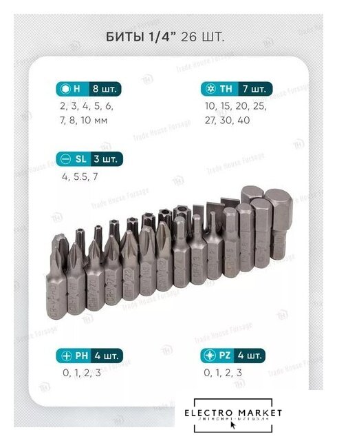| Шестигранные отверточные биты 1/4" | 8 предмет(ов) |