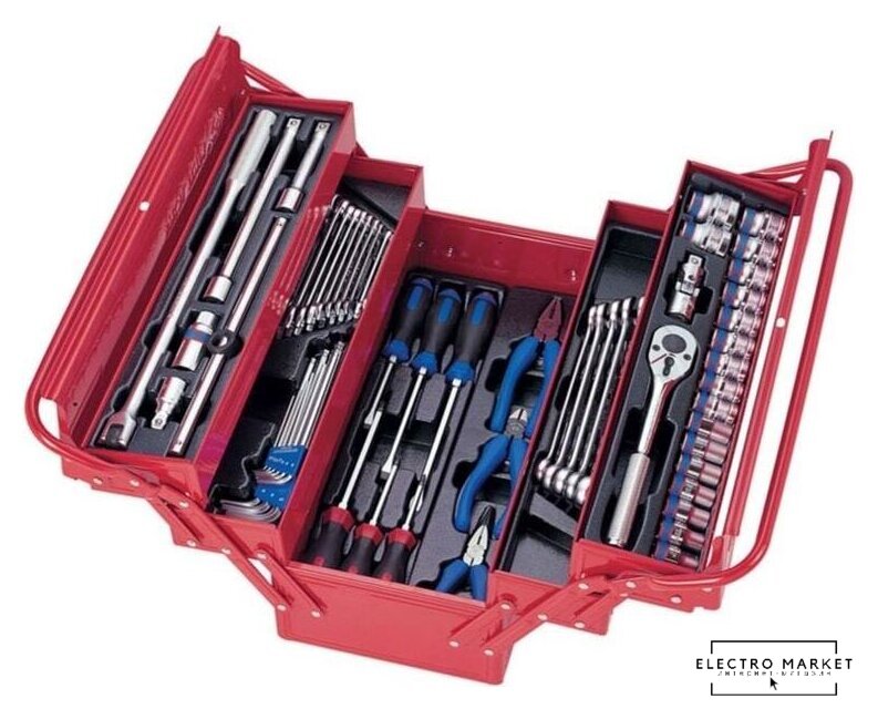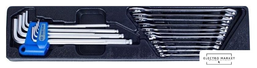 | Комплектация | Комплект комбинированных ключей;Комплект силовых отвёрток;Комплект шарнирно-губцевого инструмента; Комплект принадлежностей для торцевых головок; Комплект торцевых головок с принадлежностями; Комплект комбинированных ключей и шестигранников. |