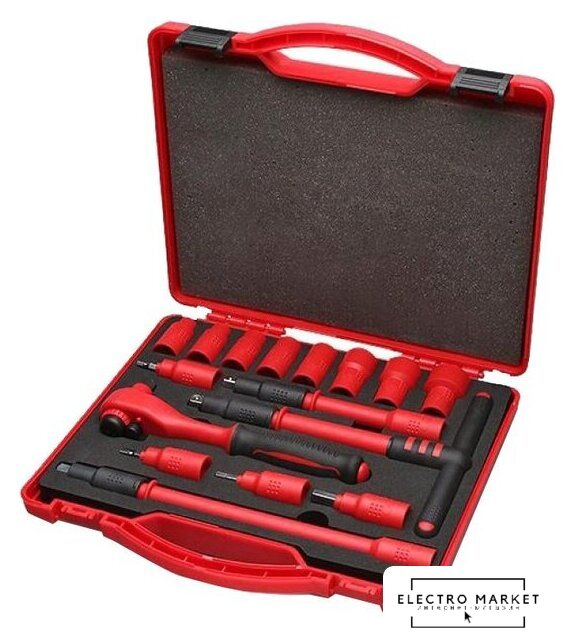 Комплектация | - диэлектр. трещоточный ключ 200 мм- диэлектр. Т-образная рукоятка 200 мм- диэлектр. удлинитель 150 мм- диэлектр. удлинитель 200 мм- диэлектр. шестигранная головка 3/8’’ 8 мм- диэлектр. шестигранная головка 3/8’’ 10 мм- диэлектр. шестигранная головка 3/8’’ 12 мм- диэлектр. шестигранная головка 3/8’’ 13 мм- диэлектр. шестигранная головка 3/8’’ 14 мм- диэлектр. шестигранная головка 3/8’’ 17 мм- диэлектр. шестигранная головка 3/8’’ 19 мм- диэлектр. шестигранная головка 3/8’’ 24 мм- диэлектр. шестигранный ключ 4 мм- диэлектр. шестигранный ключ 5 мм- диэлектр. шестигранный ключ 6 мм- диэлектр. шестигранный ключ 8 мм |