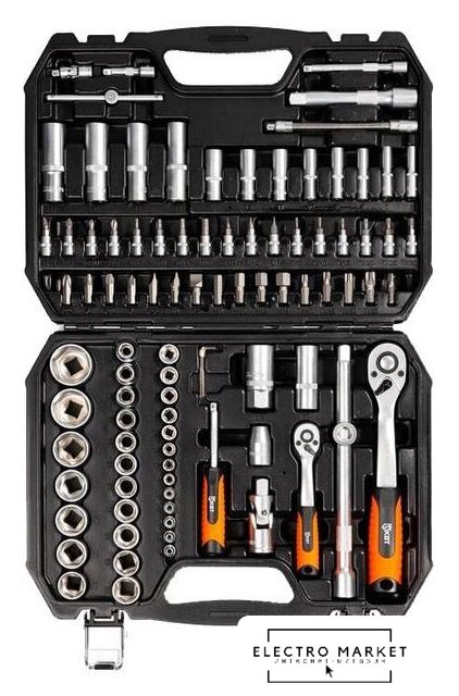 | Комплектация | КОМПЛЕКТ 1/2"Головки торцевые шестигранные: 10; 11; 12; 13; 14; 15; 16; 17; 18; 19; 20; 21; 22; 23; 24; 27; 30; 32 ммГоловки торцевые удлиненные: 14; 15; 17; 19 ммГоловки свечные: 16; 21 ммУниверсальный шарнир Ключ-трещотка , 72 зубцаУдлинитель: 125; 250 ммАдаптер для удлинителя 3/8″ (F) х 1/2″ (М)Обойма-держатель для битБиты 30 мм: Т40, Т45, Т50, Т55 / PH: 3; 4 / PZ: 3; 4 / FD (SL): 8; 10; 12 / HEX: 8; 10; 12; 14 ммКОМПЛЕКТ 1/4"Головки торцевые шестигранные: 4; 4.5; 5; 5.5; 6; 7; 8; 9; 10; 11; 12; 13; 14 ммГоловки торцевые удлиненные : 6; 7; 8; 9; 10; 11; 12; 13 ммКлюч-трещотка, 72 зубцаВороток Т-образный 115 ммУниверсальный шарнир Удлинитель: 50; 100 ммВороток отверткаГибкий удлинительБиты 30 мм: Т8; Т10; Т15; Т20; Т25; Т30 / PH: 1; 2 / PZ: 1; 2 / FD (SL): 4; 4.5; 5; 7 / HEX: 3; 4; 5; 6 ммКлючи торцевые шестигранные: 1.5; 2; 2.5 ммПластиковый кейс |