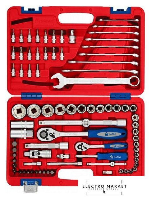 | Комплектация | Головки и принадлежности 1/2"Головки торцевые стандартные 6-гранные 13, 14, 15, 16, 17, 18, 19, 22, 24, 27, 30, 32 ммГоловки свечные 6-гранные 16, 21 ммУдлинители стандартные 125, 250 ммТрещотка флажковая с кнопкой 45 зубцов, длина 250 ммКардан 1 шт.Переходник с отверстием для воротка 3/8" х 1/2"Переходник адаптер для вставок (бит) F1/2" > F5/16" (8 мм)Головки и принадлежности 1/4"Головки торцевые стандартные 6-гранные 4, 4.5, 5, 5.5, 6, 7, 8, 9, 10, 11, 12, 13, 14 ммУдлинители стандартные 50, 100 ммТрещотка флажковая с кнопкой 45 зубцов, длина 125 ммВороток скользящий Т-образный 115 ммКардан 1 шт.Переходник адаптер для вставок (бит) F1/4 > F1/4"Отвертка-вороток 150 ммВставки (биты) 5/16" (8 мм) Крестовые Phillips PH3, PH4 Крестовые Pozidrive PZ3, PZ4 Шлицевые Slotted 8, 10, 12 мм TORX T40, T45, T50, T55 Шестигранные H8, H10, H12, H14Насадки торцевые 1/4" (6.35 мм) Крестовые Phillips PH1, PH2 Крестовые Pozidrive PZ1, PZ2 Шлицевые Slotted 4, 5.5, 7 мм TORX T8, T10, T15, T20, T25, T27, T30 Шестигранные H3, H4, H5, H6КлючиКлючи комбинированные 8, 10, 11, 12, 13, 14, 17, 19, 22 мм |