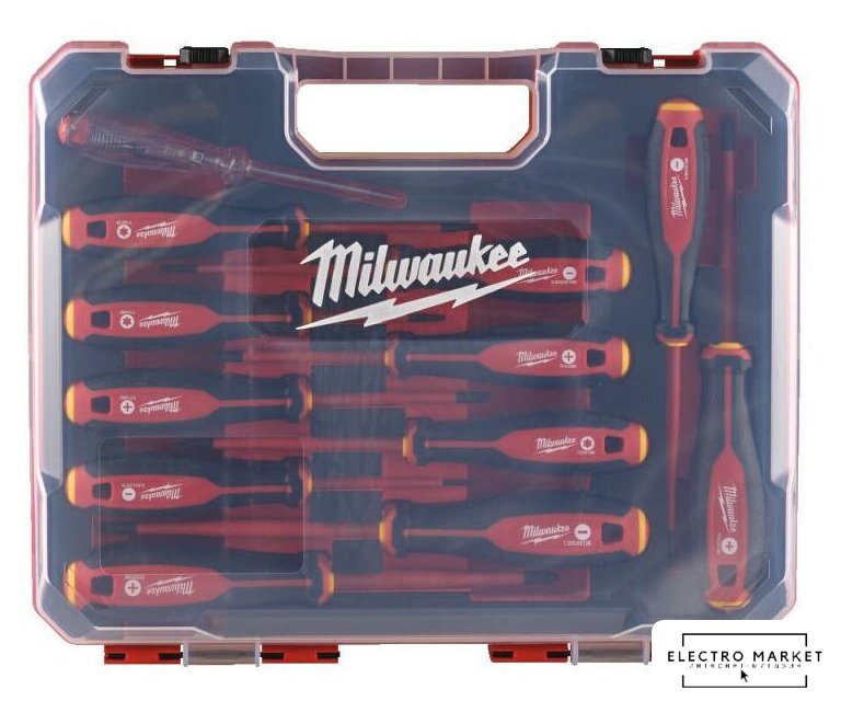| Комплектация | Отвертка VDE SL2.5 - 1 шт.Отвертка VDE SL3 - 1 шт.Отвертка VDE SL4 - 1 шт.Отвертка VDE SL5.5 - 1 шт.Отвертка VDE PH1 - 1 шт.Отвертка VDE PH2 - 1 шт.Отвертка VDE PZ1 - 1 шт.Отвертка VDE PZ2 - 1 шт.Отвертка VDE T10 - 1 шт.Отвертка VDE T15 - 1 шт.Отвертка VDE T20 - 1 шт.Тестер напряжения - 1 шт.Кейс - 1 шт. |