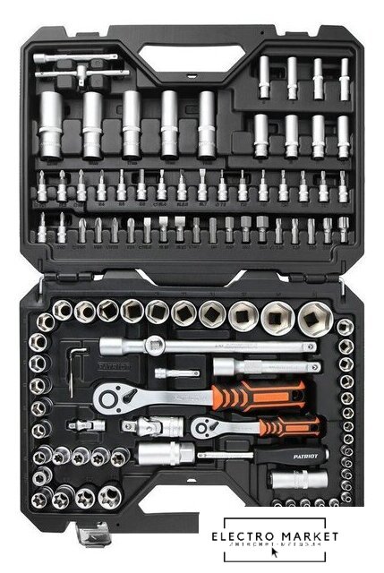| Комплектация | Головки 1/2:17шт.Головки глубокие 1/2:5шт.Головки 1/2:8шт.Рукоятка трещоточная 1/2, 72 зубцаУдлинитель 1/2:2шт.Адаптер-переходник 1/2Головки свечные 1/2:2шт.Переходник для бит 1/2 с шестигранной головкойШарнир карданный 1/2Головки 1/4:13шт.Головки глубокие 1/4:8шт.Головки 1/4:5шт.Рукоятка трещоточная 1/4, 72 зубцаРукоятка-переходник для вставок-бит 1/4Адаптер-переходник 1/4Удлинитель 1/4:2шт.Шарнир карданный 1/4Торцевые головки с битами-вставками 1/4:18шт.Биты 5/16:17шт.Шестигранный ключ:3шт.Кейс пластиковый |