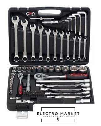 | Комплектация | Посадочный размер 1/4”:Биты — это насадки, которые используются для работы с винтами и болтами разных форм и размеров.Шестигранные (HEX): 2, 3, 4, 5, 6 мм.Внешняя звезда (TORX): T10, T15, T20, T25, T30.Крестовые (PHILLIPS): PH0, PH1, PH2, PH3.Шлицевые (SLOTTED): 3, 4, 5.5, 7 мм.Крестовая с доп. насечками (POZIDRIV): PZ1, PZ2, PZ3.Т-образный вороток подходит для торцевых головок с присоединительным квадратом 1/4”. Инструмент используется для передачи крутящего момента на торцевую головку, за счет чего достигается их вращение.Головки (6 граней) 1/4" - размеры: 4, 5, 6, 7, 8, 9, 10, 11 и 12 мм, которые подходят для работы с гайками и болтами различных диаметров. Они имеют шестигранный профиль, который обеспечивает крепкое и надежное соединение с крепежом.Удлинитель 75 мм 1/4" — это приспособление, которое используется для увеличения длины воротка или головки. Удлинитель обеспечивает дополнительную длину для работы в труднодоступных местах и увеличивает рабочий радиус.Посадочный размер 1/2":Головки (6 граней) 1/2" - размеры: 10, 11, 12, 13, 14, 15, 17, 19, 22, 24, 27, 30 и 32 мм, которые подходят для работы с гайками и болтами различных диаметров. Они имеют шестигранный профиль, который обеспечивает крепкое и надежное соединение с крепежом.Головка свечная (6 граней) 1/2" – размер: 21 мм, которая позволяет легко и безопасно заменять свечи зажигания в автомобиле.Удлинитель 125 и 250 мм 1/2" — это приспособление, которое используется для увеличения длины воротка или головки. Удлинитель обеспечивает дополнительную длину для работы в труднодоступных местах и увеличивает рабочий радиус.Остальные предметы:Держатель для бит 1/4" и 1/2" — это приспособление, которое используется для удобного хранения и организации бит. Он позволяет легко находить нужную насадку и не терять ее.Кардан 1/2" и 1/4" – приспособление для воротка, которое обеспечивает гибкость и позволяет работать под разными углами, упрощая доступ к труднодоступным местам.Трещотка 1/2" и 1/4" – это инструмент, который ускоряет и облегчает процесс работы с крепежом, позволяет изменить направления вращения и регулировать размер используемой головки.Шарнирные ключи – размеры: 8x9 мм, 10x11 мм, 12x13 мм, 14x15 мм – это ключи с двумя гибкими 12-тигранными головками, которые можно наклонять под разными углами для облегчения работы с крепежом в труднодоступных местах.Комбинированные ключи – размеры: 7, 8, 9, 10, 11, 12, 13, 14, 15, 17 и 19 мм - это инструменты, которые состоят из двух частей: одна часть имеет шестигранный профиль, а другая - рожковый. Комбинированные ключи подходят для работы с гайками и болтами разных размеров.Шестигранные ключи – размеры: 1.5, 2, 2.5, 5, 6, 8 и 10 мм – это инструменты, которые предназначены для работы с гаечными соединениями с шестигранным профилем. |