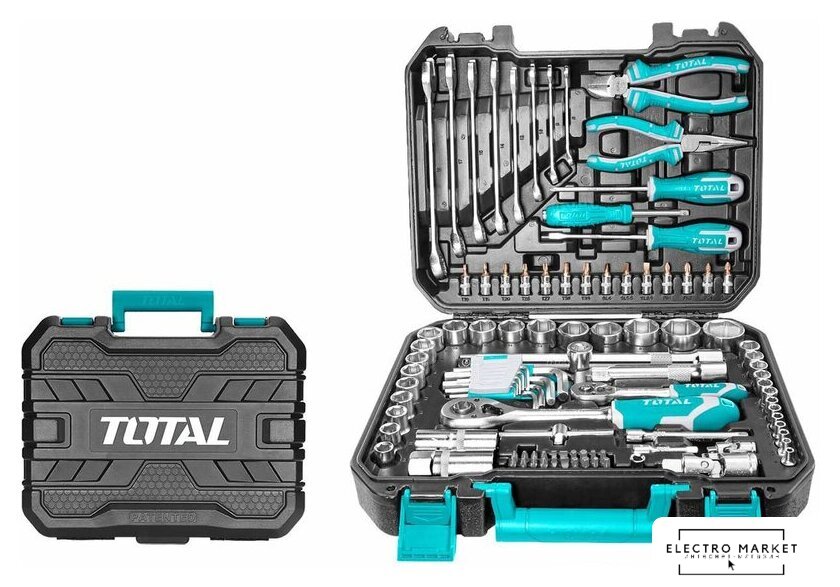 | Комплектация | Набор инструментов 1/2" (25 шт.):1/2" шестигранные головки: 10 мм, 11 мм, 12 мм, 13 мм, 14 мм, 15 мм, 16 мм, 17 мм, 18 мм, 19 мм, 20 мм, 21 мм, 22 мм, 23 мм, 24 мм, 27 мм, 30 мм, 32 мм - 18 шт.Удлинитель 1/2": 125 мм (5"), 250 мм (10") - 2 шт.1/2" универсальный шарнир - 1 шт.Трехходовой адаптер: 1/2" на 3/8" - 1 шт.Свечные головки: 16мм, 21мм - 2 шт.Ключ с трещоткой 1/2" (45 зубов) - 1 шт.Набор инструментов 1/4" (39 шт.):Насадки 1/4" (25 мм): SL3, SL4, SL5, SL6, PH0, PH1, PH2, PH3, PZ0, PZ1, PZ2, PZ3, H3, H4, H5, H6, T10, T15, T20, Т30 - 20Головки 1/4": 4 мм, 4,5 мм, 5 мм, 5,5 мм, 6 мм, 7 мм, 8 мм, 9 мм, 10 мм, 11 мм, 12 мм, 13 мм, 14 мм. - 13Удлинитель 1/4": 50 мм (2"), 100 мм (4") - 2 шт.1/4" универсальный шарнир - 1 шт.1/4" скользящая Т-образная балка - 1 шт.1/4" ручка спиннера, 150 мм - 1 шт.1/4" ключ с трещоткой (45 зубов) - 1 шт.Прочие инструменты (36 шт.):Комбинированные гаечные ключи: 6 мм, 8 мм, 10 мм, 12 мм, 14 мм, 15 мм, 17 мм, 19 мм. - 8 шт.Шестигранные ключи: 1,5 мм, 2 мм, 2,5 мм, 3 мм, 4 мм, 5 мм, 6 мм, 8 мм, 10 мм - 9 шт.Длинногубцы 6" - 1 шт.Диагональные плоскогубцы 6" - 1 шт.Шлицевые отвертки (S2): SL6,5*100 мм - 1 шт.Отвертка Phillips (S2): PH2*100 мм - 1Биты: T10, T15, T20, T25, T27, T30, T35, SL4, SL5.5, SL6.5, PH1, PH2, PZ1, PZ2 - 14 шт.Отвертка держатель бит - 1 шт. |