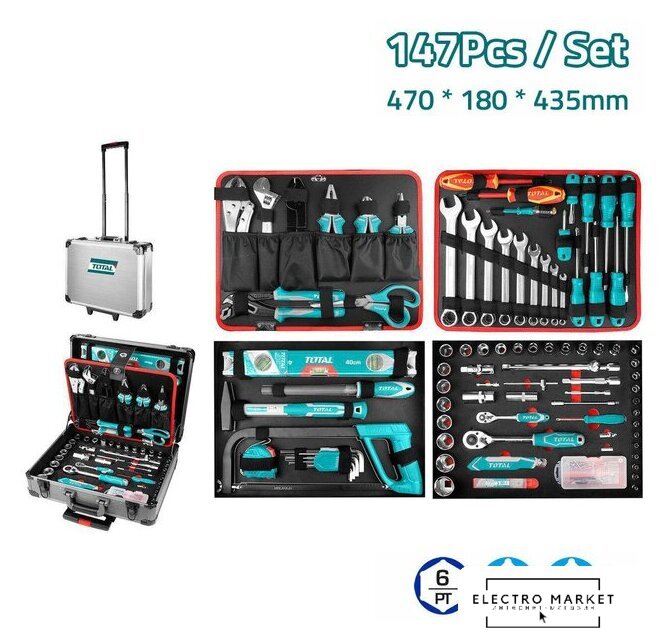 | Комплектация | Ручные инструменты (56 шт.):Комбинированные плоскогубцы 7" (Cr-V) - 1 шт.Длинногубцы 6" (Cr-V) - 1 шт.Диагональные кусачки 6" (Cr-V) - 1 шт.Полукруглый стальной напильник 200 мм. - 1 шт.Уровень 40см - 1 шт.Молоток слесарный 300 г - 1 шт.Ножовка по металлу 300 мм - 1 шт.Рулетка 5 м - 1 шт.Инструмент для зачистки проводов 8,5" - 1 шт.Клещи трубные перестовные 10" - 1 шт.Разводной ключ 8" - 1 шт.Ключ для стопорных гаек с изогнутыми губками 10" - 1 шт.Ножницы электрика 5,5" - 1 шт.Изолированная шлицевая отвертка SL5*125 мм - 1 шт.Изолированная отвертка Phillips PH2*100 мм - 1 шт.Индикаторная отвертка - 1 шт.Магнитный держатель бит - 1 шт.Нож с сегментным лезвием - 1 шт.Сегментные лезвия (сменные) - 10 шт.Комбинированный ключ: 6 мм, 8 мм, 10 мм, 12 мм, 14 мм, 15 мм, 17 мм, 19 мм, 22 мм - 9 шт.Шестигранные ключи: 1,5 мм, 2 мм, 2,5 мм, 3 мм, 4 мм, 5 мм, 6 мм, 8 мм, 10 мм - 9 шт.Биты 25 мм: PH0, PH1, PH2, PH3, PZ0, PZ1, SL3, SL4, SL5, SL6 - 10 шт.Шлицевые отвертки S2 Steel (4 шт.):Отвертка SL8*150 ммОтвертка SL6*125 ммОтвертка SL5*100 ммОтвертка SL6,5*38 ммКрестовые отвертки Phillips S2 Steel (3 шт.):Отвертка РН2*150 мм - 1 шт.Отвертка PH1*100 мм - 1 шт.Отвертка PH2*38 мм - 1 шт.Нобор инструментов 1/2" (25 шт.):Шестигранных головок 1/2": 10 мм, 11 мм, 12 мм, 13 мм, 14 мм, 15 мм, 16 мм, 17 мм, 18 мм, 19 мм, 20 мм, 21 мм, 22 мм, 23 мм, 24 мм, 27 мм, 30 мм, 32 мм. - 18 шт.Трещотка 1/2", 45 зуб. - 1 шт.Трехходовой адаптер: 1/2" на 3/8" - 1 шт.Карданный шарнир 1/2" - 1 шт.Свечные головки: 16 мм, 21 мм - 2 шт.Удлинитель 1/2" 125 мм (5") - 1 шт.Удлинитель 1/2" 250 мм (10") - 1 шт.Нобор инструментов 1/4" (21 шт.):Шестигранные головок 1/4": 4 мм, 4,5 мм, 5 мм, 5,5 мм, 6 мм, 7 мм, 8 мм, 9 мм, 10 мм, 11 мм, 12 мм, 13 мм, 14 мм. - 13 шт.Трещотка 1/4", 45 зуб. - 1 шт.Вороток-отвертка 1/4" 150 мм - 1 шт.Карданный шарнир 1/4" - 1 шт.Удлинитель 1/4" 50 мм (2") - 1 шт.Удлинитель 1/4" 100 мм (4") - 1 шт.Гибкий удлинитель 1/4" 150 мм (6") - 1 шт.Магнитный хвостовик 1/4" - 1 шт.Держатель бит 1/4" - 1 шт.Винты (36 шт.)Шуруп для ДВП 2,5 мм - 8 шт.Шуруп для ДВП 5 мм - 8 шт.Саморез 2,5 мм - 10 шт.Саморез 5 мм - 10 шт.Упаковка:Алюминиевый чемодан с выдвижной ручкой -1 шт.Картонная коробка |