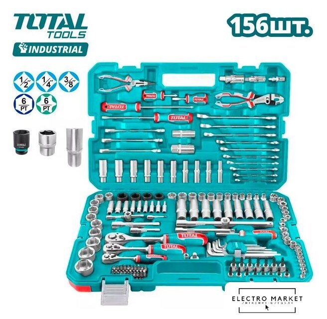 | Комплектация | Трещотки (1/4'', 3/8'', 1/2'') - 3 шт. Торцевые шестигранные головки 1/4'' (4, 4.5, 5, 5.5, 6, 7, 8, 9, 10, 11, 12, 13 мм) - 12 шт. Торцевые шестигранные головки 3/8'' (8, 9, 10, 11, 12, 13, 14, 15, 16, 17, 18, 19 мм) - 12 шт. Торцевые шестигранные головки 1/2'' (17, 18, 19, 20, 21, 22, 24, 27, 30, 32 мм) - 10 шт. Ударные торцевые шестигранная головки 1/2'' (17, 19, 21, 22 мм) - 4 шт. Торцевые головки TORX 3/8'' (E8, E10, E11, E12, E14, E16, E18, E20) - 8 шт. Глубокие шестигранные головки 1/4'' (4, 5, 6, 7, 8, 9, 10, 11, 12 мм) - 9 шт. Глубокие шестигранные головки 3/8'' (8, 9, 10, 11, 12, 13, 14, 15, 17, 19 мм) - 10 шт. Глубокие шестигранные головки 1/2'' (12, 13, 14, 15, 17, 18, 19, 21, 22 мм) - 9 шт. Свечные головки 1/2'' (16, 21 мм) - 2 шт. Удлинители 1/4'' (50, 100 мм) - 2 шт. Удлинители 3/8'' (75, 150 мм) - 2 шт. Удлинители 1/2'' (125, 250 мм) - 2 шт. Трехходовой адаптер 1/4'' (3/8''(F) * 1/4''(M)) - 1 шт. Трехходовой адаптер 1/2'' (3/8''(F) * 1/2''(M) - 1 шт. Универсальный шарнир (1/4'', 3/8'', 1/2'') - 3 шт. Вороток 1/4'' * 150 мм - 1 шт. Держатель бит 1/4'' * 6,35 мм - 1 шт. Адаптер 1/2''(F) * 3/8''(M) - 1 шт. Биты Hex 1/4'' * 25 мм (SL3, SL4, SL5, SL6, PH0, PH1, PH2, PH3, PZ0, PZ1, PZ2, PZ3, T10, T15, T20, T30, H3, H4, H5, H6.) - 20 шт. Головки-биты 3/8'' * 48 мм (PH1, PH2, PZ1, PZ2, SL3, SL4, SL5, SL6, T10H, T15H, T20H, T25H, T27H, T30H, T40H) - 15 шт. Комбинированне гаечные ключи (8, 9, 10, 11, 12, 13, 14, 17, 18, 19 мм) - 10 шт. Гаечные ключи с трещоткой (12, 13, 14 мм) - 3 шт. Отвертки: (SL6*38, SL6*150, PH2*38, PH2*150) - 4 шт. Набор шестигранных ключей: (1.5, 2, 2.5, 3, 4, 5, 6, 8, 10 мм) - 9 шт. Длинногубцы 6'' - 1 шт. Плоскогубцы переставные 8'' - 1 шт. Кейс |