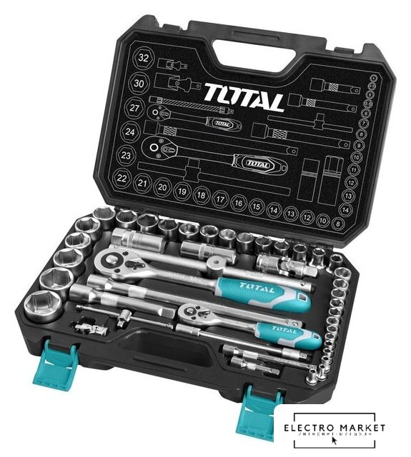 Комплектация | Рукоятка трещоточная 1/4", 45 зубьев. - 1штГоловки торцевые 1/4''DR : 4, 4.5, 5, 5.5, 6, 7, 8, 9, 10, 11, 12, 13, 14 мм - 13 шт.Шарнир карданный 1/4"DR - 1шт.Удлинитель 1/4"DR 50 мм - 1шт.Удлинитель 1/4"DR 100 мм - 1шт.Гибкий удлинитель 1/4 "* 150мм - 1шт.Рукоятка трещоточная 1/2", 45 зубьев. - 1штГоловки торцевые 1/4''DR: 8-10-12-13-14-15-16-17-18-19-20-21-22-23-24-27-30-32mm - 18 шт.Шарнир карданный 1/2"DR - 1шт.Удлинитель 1/2"DR 125 мм - 1шт.Удлинитель 1/2"DR 250 мм - 1штВороток Т-образный 1/2"DR, 250 мм - 1штСвечные головки: 16 мм и 21 мм - 2шт. |
