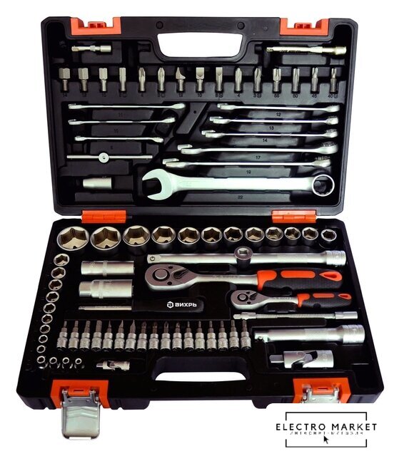 | Комплектация | Ключ трещоточный 1/2" CrV, PP+TPRКлюч трещоточный 1/4" CrV, PP+TPRГоловки торцевые 1/2" 14, 15, 16, 17, 18, 19, 20, 22, 24, 27, 30, 32 CrVГоловки торцевые 1/4" 4, 4.5, 5, 5.5, 6, 7, 8, 9, 10, 11, 12, 13, 14 CrVУдлинитель гибкий отверточная рукоятка 1/4" CrVКлючи комбинированные 8, 10, 11, 12, 13, 14, 17, 19, 22 CrVКардан 1/2" CrVКардан 1/4" CrVУдлинитель 1/2" 125 мм, 250 мм. CrVУдлинитель 1/4" 50 мм, 100 мм. CrVАдаптер для бит 1/4" длина 25 мм. CrVГоловки свечные 16 мм и 21 мм CrVВороток Т-образный 1/4" CrVБиты с торцевой головкой 1/4" Н3, H4, H5, H6 S2T8, T10, T15, T20, T25, T30SL 4, SL 5.5, SL 7PH1, PH2PZ1, PZ2Адаптер 3/8" 1/2"" CrVАдаптер 1/2" 5/16"" CrVБиты 5/16" Bits 5/16" T40, Т45, Т50, Т55 S2SL8, SL10, SL12PH3, PH4PZ3, PZ4Н8, H10, H12, H14Отвертка-держатель для бит CrV |