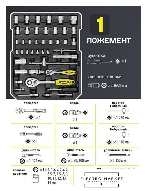 универсальный набор, 1/4", 3/8", 1/2", 156 предметов
