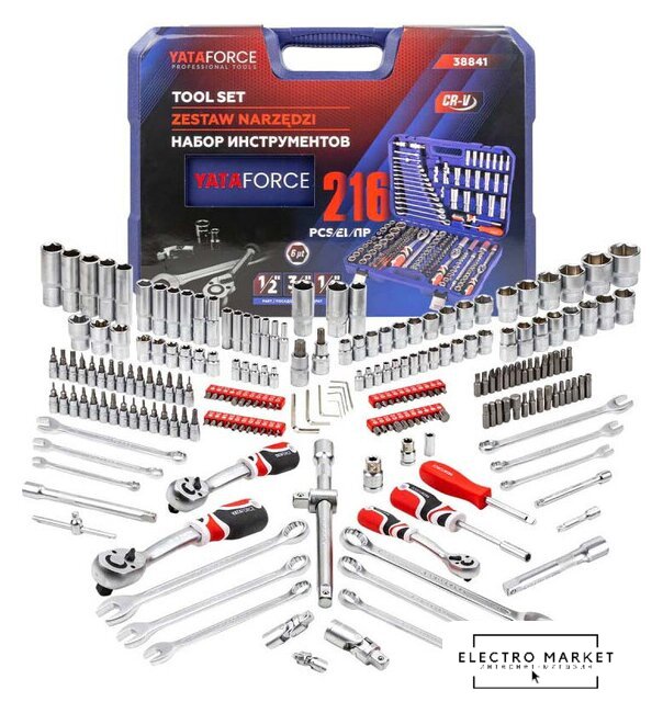 универсальный набор, 1/4", 3/8", 1/2", 216 предметов