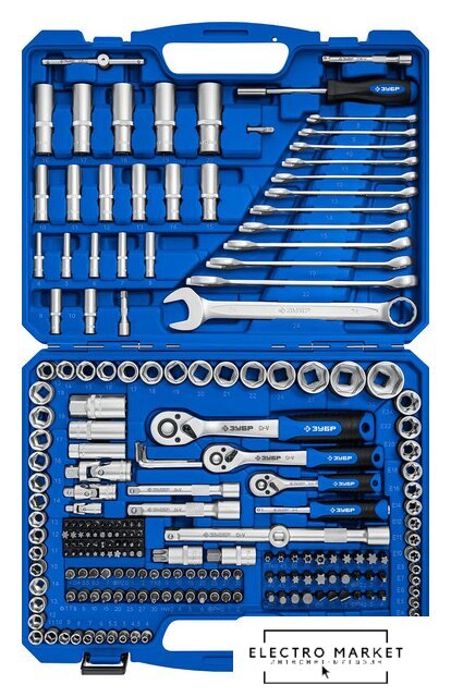 | Комплектация | Головки торцовые 1/2″ FLANK - (13,14,15,16,17,18,19,20,21,22,24,27,30,32 мм) - 14 шт.Головки торцовые 3/8″ FLANK - (10,11,12,13,14,15,16,17,18,19 мм) - 10 шт.Головки торцовые 1/4″ FLANK - (4,4.5,5,5.5,6,7,8,9,10,11,12,13,14 мм) - 13 шт.Головки торцовые удлиненные 1/2″ FLANK - (16,17,18,19,22 мм) - 5 шт.Головки торцовые удлиненные 3/8″ FLANK - (10,11,12,13,14,15 мм) - 6 шт.Головки торцовые 1/2″ E-TORX - (E20,Е22,Е24) - 3 шт.Головки торцовые 3/8″ E-TORX - (E10,E11,E12,E14,E16,E18) - 6 шт.Головки торцовые 1/4″ E-TORX - (E4,E5,E6,E7,E8) - 5 шт.Головки торцовые свечные 1/2″ - (16,21 мм) - 2 шт.Головка торцовая свечная 3/8″ - (14 мм) - 1 шт.Удлинитель для торцовых головок 1/2″ - (125,250 мм) - 2 шт.Удлинитель для торцовых головок 3/8″ - (125 мм) - 1 шт.Удлинитель для торцовых головок 1/4″ - (50,100 мм) - 2 шт.Шарнир карданный - (1/2″,3/8″,1/4″) - 3 шт.Трещотки для торцовых головок с быстрым сбросом 72 зубца - (1/2″,3/8″,1/4″) - 3 шт.Адаптер трехпозиционный - (1/2″M×3/8″F) - 1 шт.Вороток-отвертка 1/4″ - (150 мм) - 1 шт.Вороток Т-образный 1/2″ - (250 мм) - 1 шт.Адаптер для бит 8 мм - (1/2″,3/8″) - 2 шт.Адаптер для бит - (1/4″SQ x 1/4″F) - 1 шт.Битодержатель с магнитом - (HEX1/4″ x 1/4″F) - 1 шт.Биты-головки 1/2″ - (H14,T70) - 2 шт.Биты-головки 1/4″ - (HEX H3,H4,H5,H6,TORX T8,T9,T10,T15,T20,T25,T27,T30,TORX HOLE TH8,TH9,TH10,TH15,TH20,TH25,TH27,TH30,PHILLIPS PH0,PH1,PH2) - 23 шт.Биты 8 мм х 30 мм - (HEX H7,H8,H10,H12,POZIDRIVE PZ2,PZ3,PZ4,PHILLIPS PH2,PH3,PH4,SLOT SL8,SL10,SL12,TORX T40,T45,T50,T55,T60,TORX HOLE TH40,TH45,TH50) - 21 шт.Биты 1/4″ х 25 мм - (SQUARE 0,1,2,3,SECURITY TORQ-SET 4,6,8,10,SPANNER 6,8,10,CLUTCH 1,2,3,SECURITY TRI-WING 1,2,3,4 TORX T5,T6,T7,TORXHOLE TH7) - 22 шт.Ключи комбинированные - (8,9,10,11,12,13,14,15,17,19,22,24 мм) - 12 шт.Ключи имбусовые - (1.27,1.5,2,2.5,3,4,5 мм) - 7 шт. |