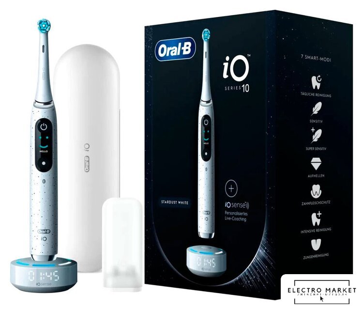 зубная щетка, мягкая чистка/глубокая чистка/отбеливание/массаж/чистка языка, питание от аккумулятора, движение головки: вращение + пульсация, дисплей, поддержка мобильного приложения