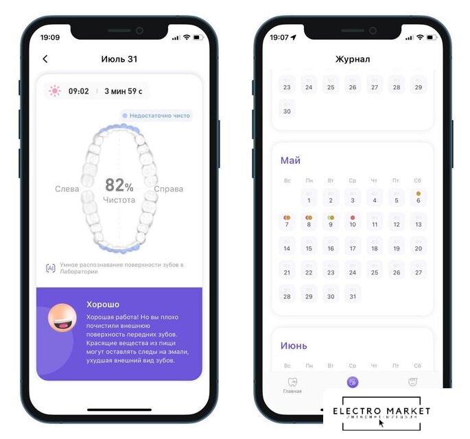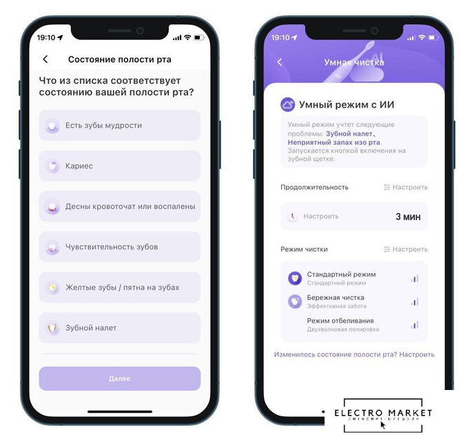 зубная щетка, питание от аккумулятора, движение головки: вращение + пульсация, поддержка мобильного приложения