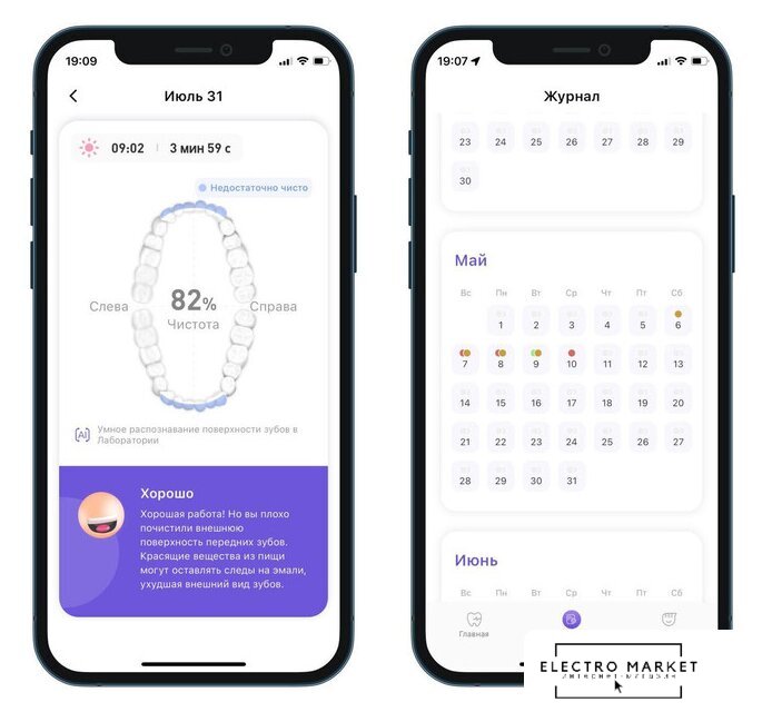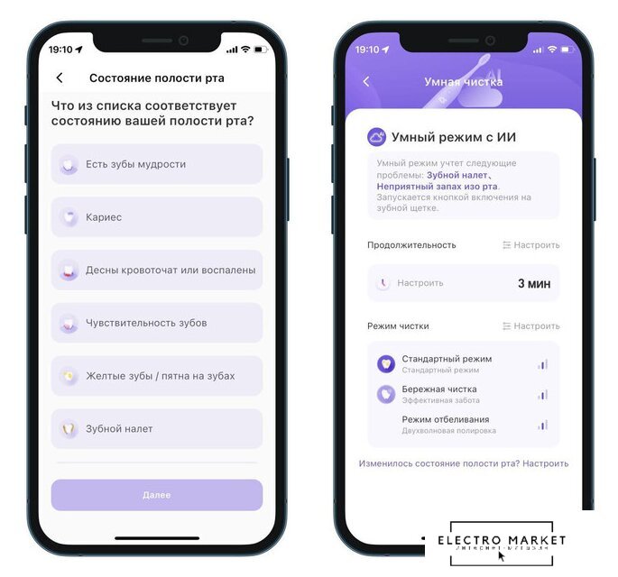 зубная щетка, питание от аккумулятора, движение головки: вращение + пульсация, поддержка мобильного приложения