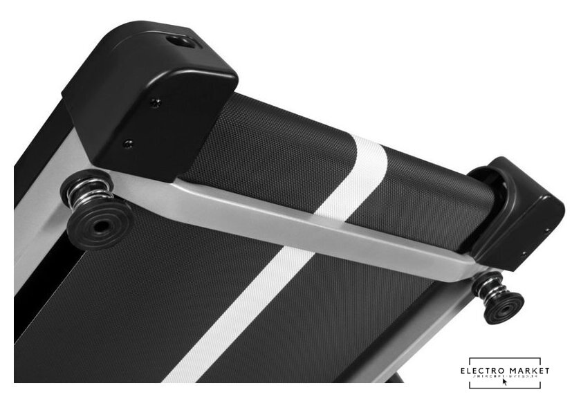 Особенности | Компактная, малошумная беговая дорожка для дома. В основе дорожки по-прежнему надежная рама, выдерживающая вес пользователя до 110 кг. Двигатель стал еще надежнее за счет увеличения мощности до 2,0 л.с. в режиме постоянной эксплуатации. Амортизация здесь представлена двумя цилиндрическими эластомерами с пружинами, а также парафинированную демпфирующую деку толщиной 16 мм. и 2-ухслойное полимерное беговое полотно толщиной 1.6 мм. Тренировочный компьютер оборудован большим голубым многофункциональным LCD дисплеем. В программный пакет входят 12 предустановленных программ, направленных на тренировку скорости, выносливости, укрепления сердечно-сосудистой системы и похудания. Помимо предустановленных программ, можно воспользоваться самостоятельно регулируемым ручным режимом.На поручнях расположены сенсорные датчики пульса. Перемещение дорожки происходит за счет 2-ух транспортировочных роликов |