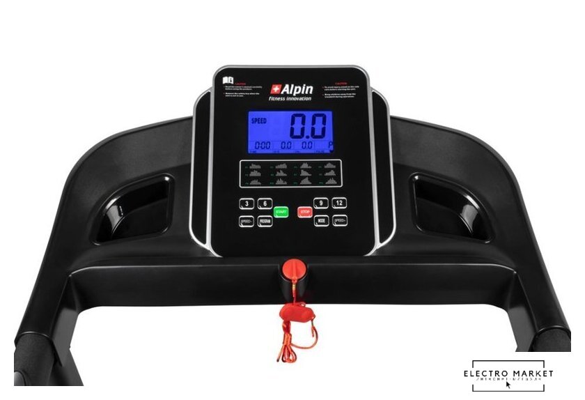 электрическая беговая дорожка, без регулировки угла наклона, полотно: 41.5×120 см, скорость движения: 0.8–12 км/ч, 15 программ тренировок
