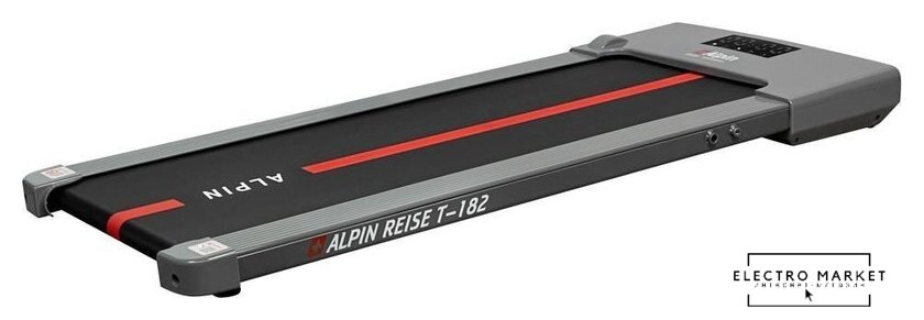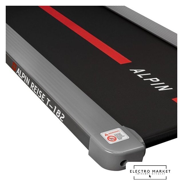 Особенности | Alpin Reise T-182 – современная электрическая беговая дорожка, прекрасно сочетающая в себе просторное полотно, мощный двигатель, многофункциональный компьютер. Плавное и уверенное движение полотна на скорости от 1,0 до 8 км/ч обеспечивает надежный двигатель мощностью 2,0 л.с., при этом уровень шума не превышает 51 дБ. Мощность двигателя позволяет заниматься на тренажере пользователям весом до 100 кг. Большое беговое полотно размером 112 см в длину и 42 см в ширину – обеспечит комфортные и безопасные тренировки. Управление дорожкой происходит с помощью пульт-браслета. Беговая дорожка имеет 8 встроенных программ. Верхний слой полотна выполнен из специального полимера, который не только гарантирует длительную эксплуатацию, но и за счет ромбовидной формы поверхности обеспечивает надежное сцепление обуви с полотном и дополнительную амортизацию. В основе конструкции одинарной деки лежит древесно-волокнистая композитная плита средней плотности. Ее толщина составляет 16 мм, она обработана парафином для мягкого и долговечного скольжения. Одной из самых важных особенностей беговой дорожки Alpin Reise T-182 является её компактность (высота тренажера составляет всего 12 см.). Эту беговую дорожку вы без труда сможете разместить под кроватью или поставить за шторы, в случае необходимости проведения тренировки, просто достаньте дорожку – проведите тренировку и снова уберите тренажер. |