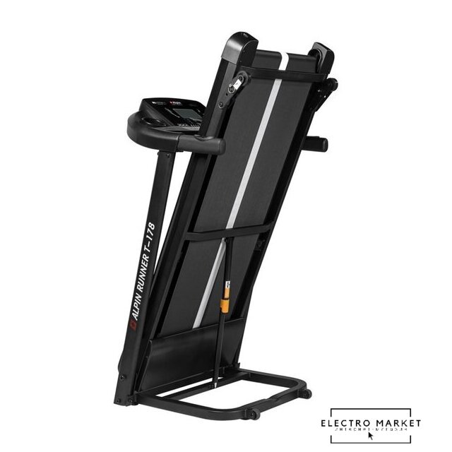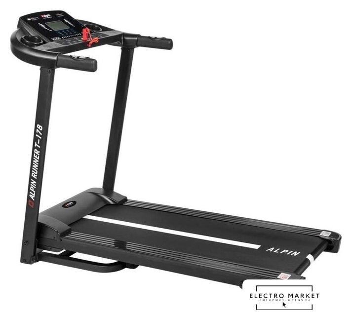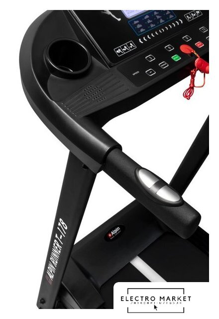 Особенности | Alpin Runner T-178 – современная электрическая беговая дорожка, прекрасно сочетающая в себе просторное полотно, мощный двигатель, многофункциональный компьютер и разумную цену. Плавное и уверенное движение полотна на скорости от 1,0 до 14 км/ч обеспечивает надежный двигатель постоянного тока мощностью 2,0 л.с., при этом уровень шума не превышает 58 дБ. Мощность двигателя позволяет заниматься на тренажере пользователям весом до 120 кг. Беговое полотно размером 115 см в длину и 42 см в ширину – обеспечит комфортные и безопасные тренеровки. Угол наклона регулируется механическим путем в диапазоне от 0 до 5%. Верхний слой полотна выполнен из специального полимера, который не только гарантирует длительную эксплуатацию, но и за счет ромбовидной формы поверхности обеспечивает надежное сцепление обуви с полотном и допонительную амортизацию. В основе конструкции одинарной деки лежит древесно-волокнистая композитная плита средней плотности. Ее толщина составляет 16 мм, она обработана парафином. |