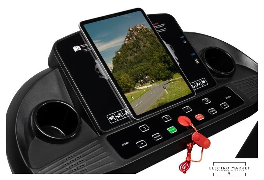 электрическая беговая дорожка, без регулировки угла наклона, полотно: 41.5×120 см, скорость движения: 0.8–12 км/ч, 15 программ тренировок
