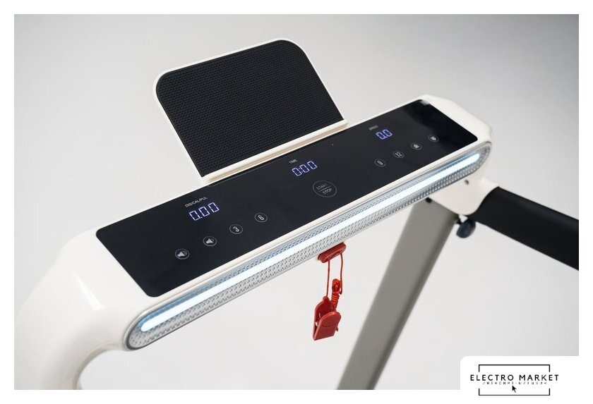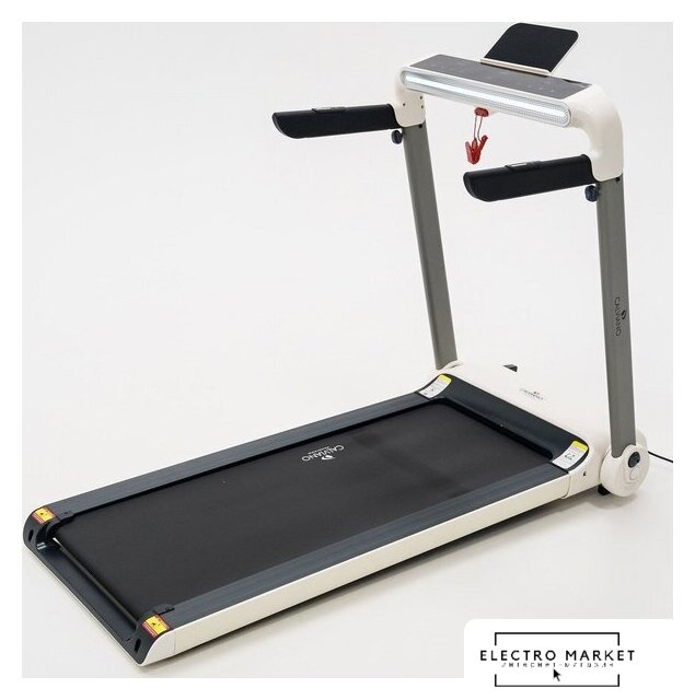 Особенности | - Кардиодатчики на поручнях- Кнопки регулировки скорости- Возможность вертикального хранения - Транспортировочные ролики- Bluetooth, крепление под телефон, LED экран |