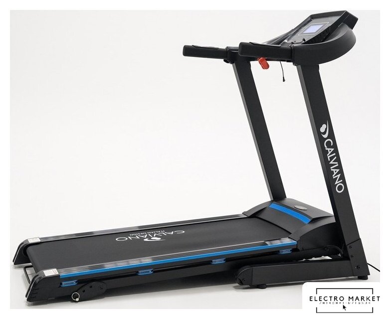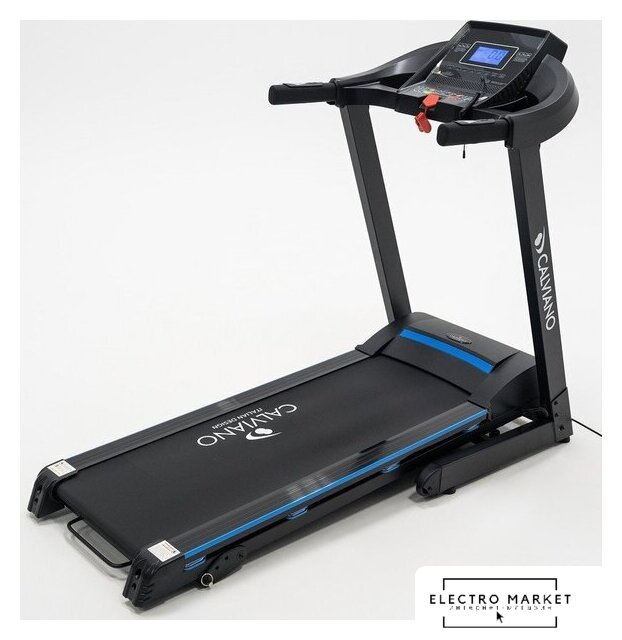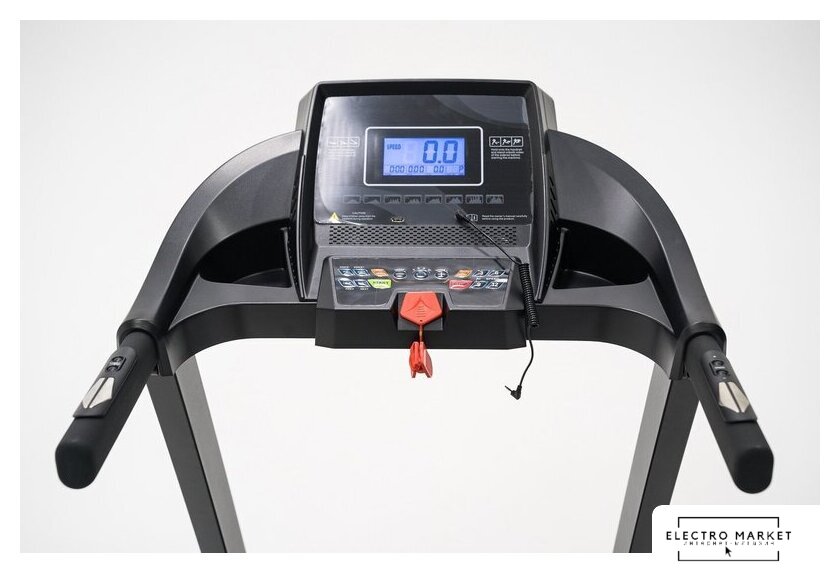 электрическая беговая дорожка, ручная ступенчатая регулировка угла наклона, полотно: 40×100 см, скорость движения: 0.8–12 км/ч, 16 программ тренировок