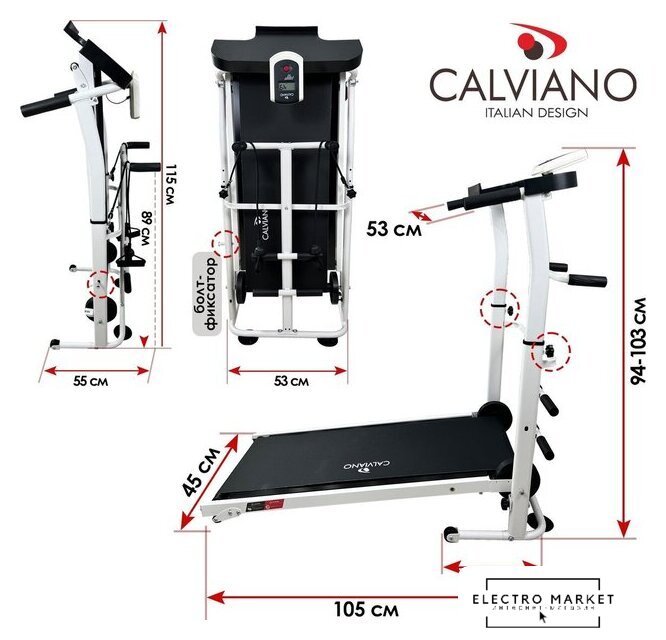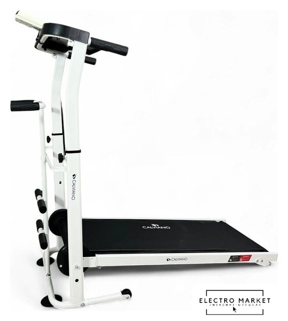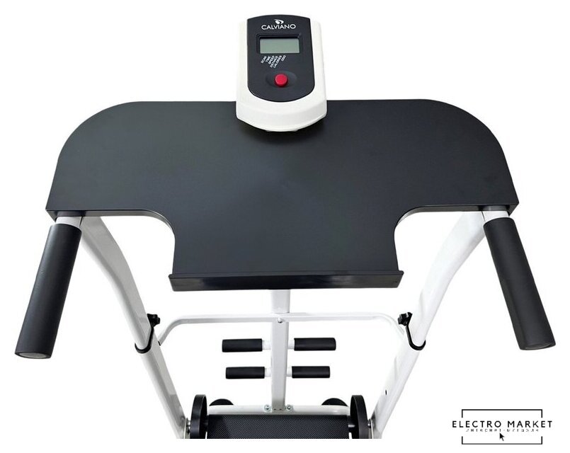 Особенности | Прочная и надежная конструкция;Эспандеры для рук;Диск здоровья;Широкая подставка для планшета или смартфона;На встроенном ЖК дисплее вы сможете осуществлять контроль за показаниями тренировок: время, скорость, израсходованные калории, пройденная дистанция;Регулировка угла наклона полотна: 2 положения;Регулировка поручней по высоте: 5 положений;Беговая дорожка оснащена двумя транспортировочными роликами для удобства перемещения;Складная конструкция беговой дорожки Calviano BeFIT обеспечит удобное хранение даже в небольшом помещении. |