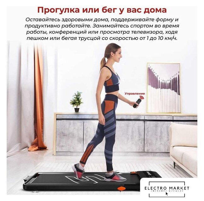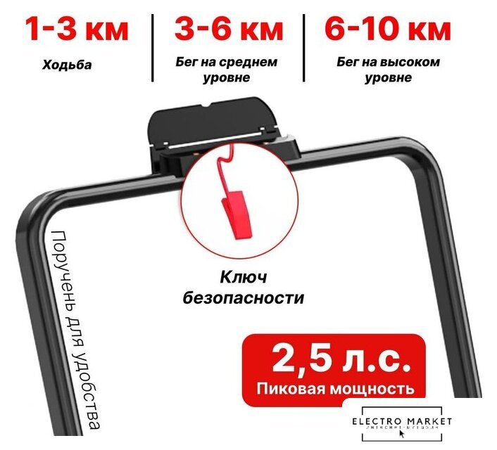 электрическая беговая дорожка, без регулировки угла наклона, полотно: 38×100 см, скорость движения: 6 км/ч