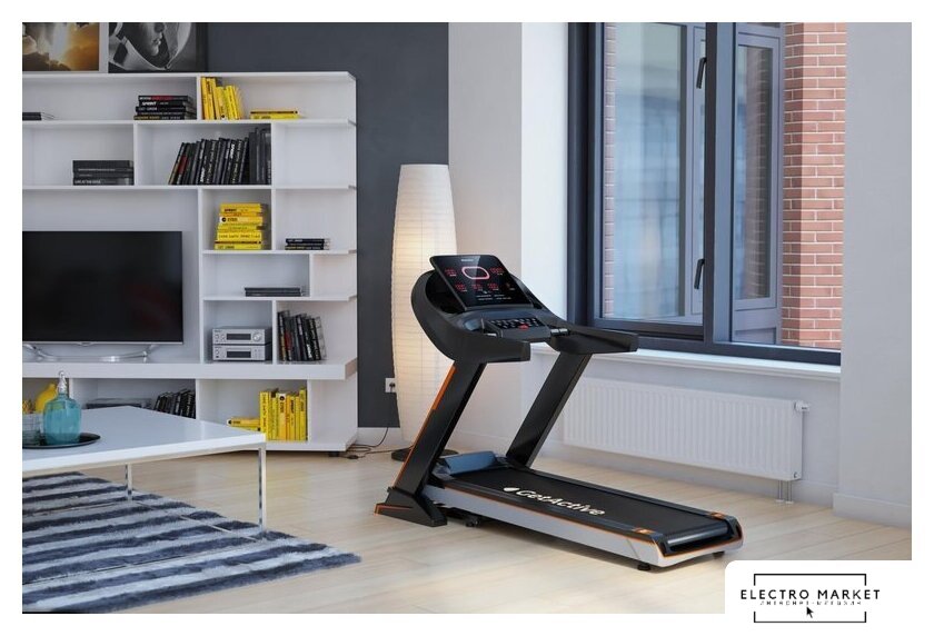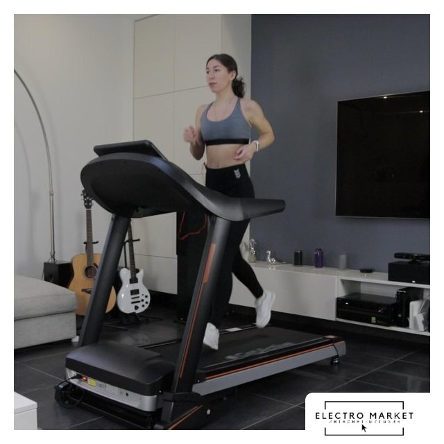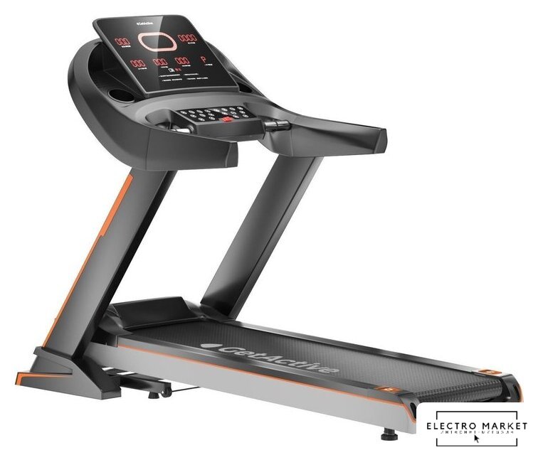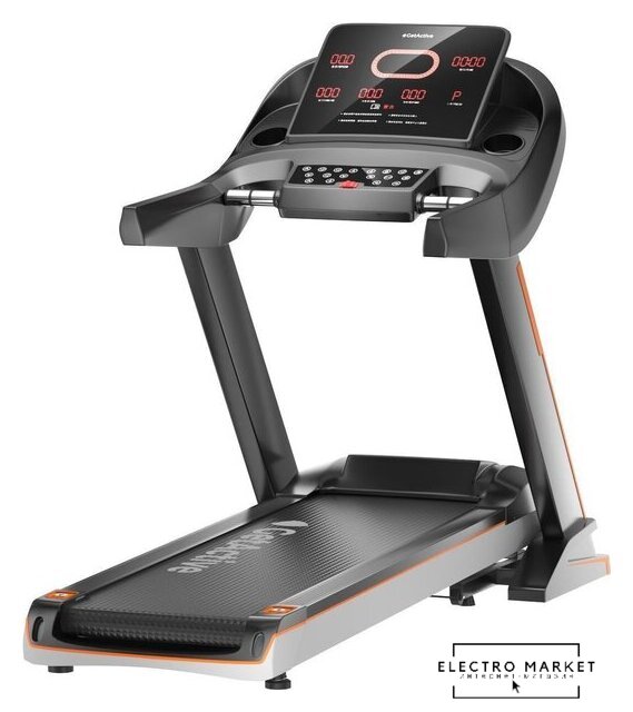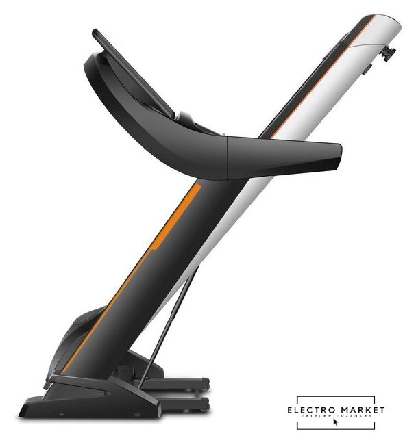 электрическая беговая дорожка, ручная ступенчатая регулировка угла наклона, полотно: 40×100 см, скорость движения: 0.8–12 км/ч, 16 программ тренировок