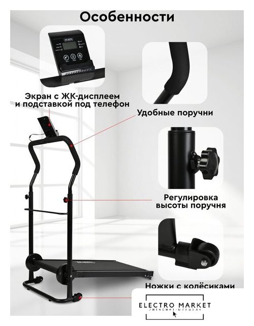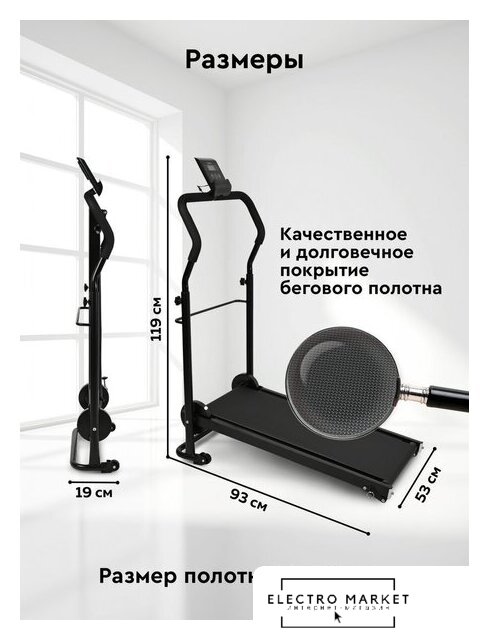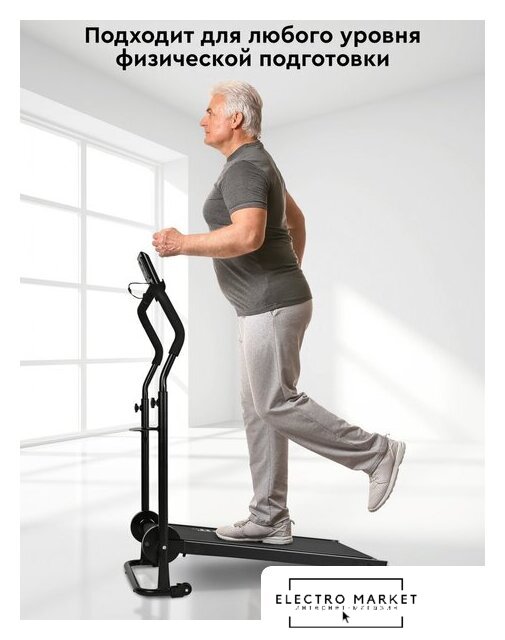 механическая беговая дорожка, ручная ступенчатая регулировка угла наклона, полотно: 35×97 см, без программ тренировок