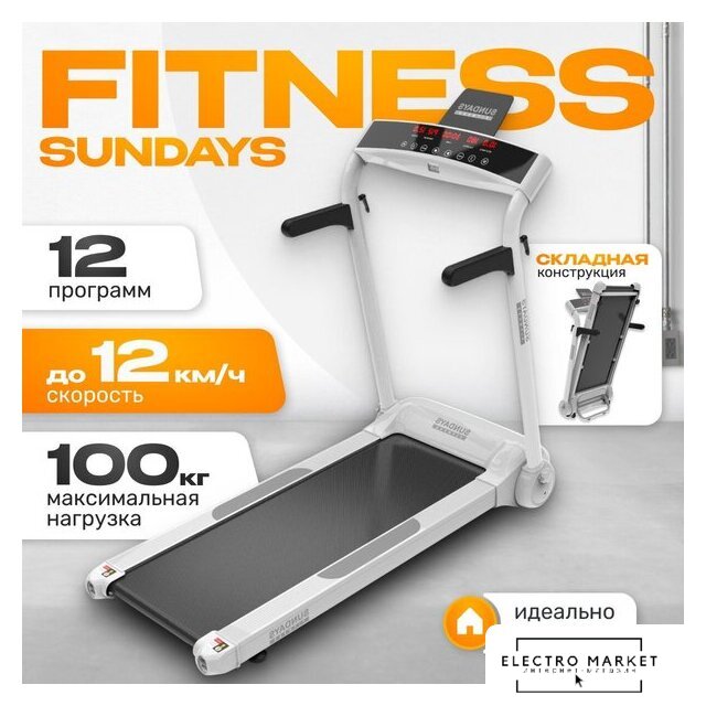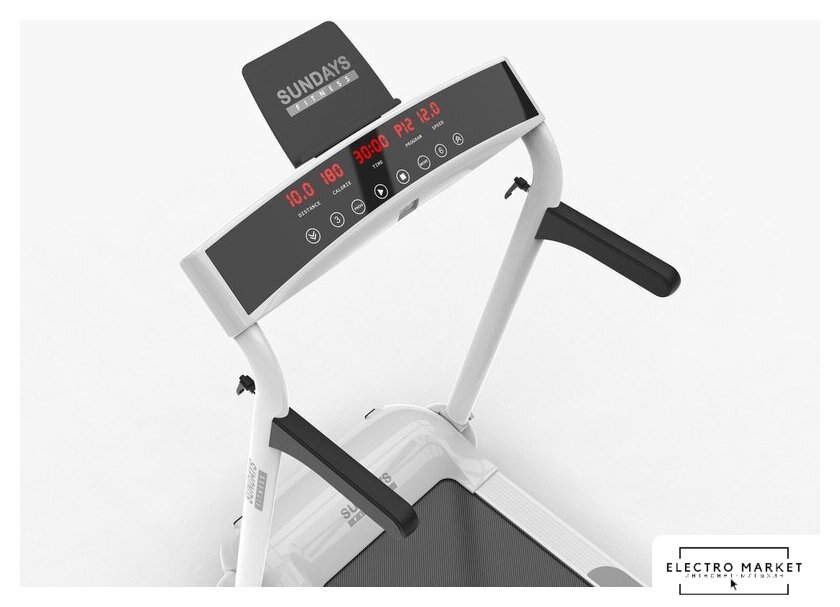 электрическая беговая дорожка, без регулировки угла наклона, полотно: 41.5×120 см, скорость движения: 0.8–12 км/ч, 15 программ тренировок